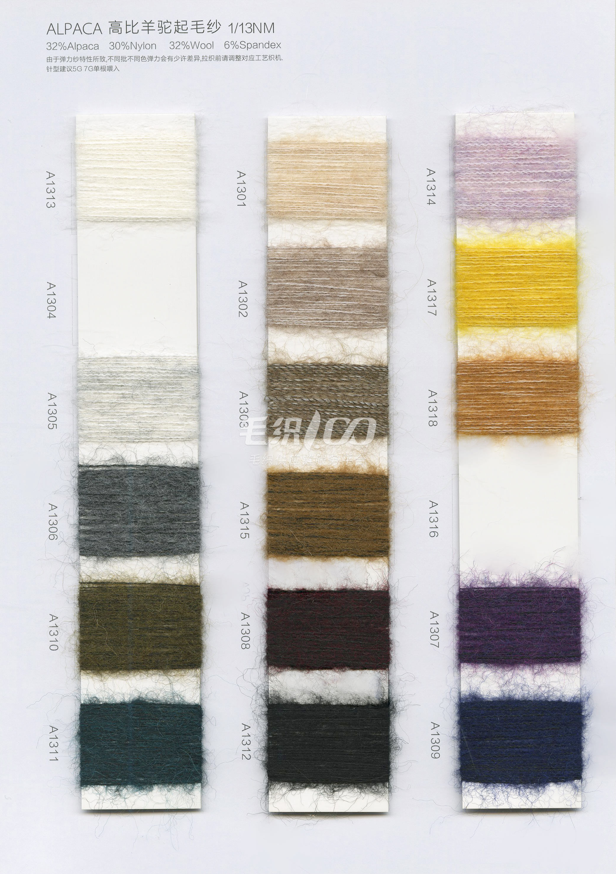 28/6 幻境-羊绒,32/2洋绒纱,48/2羊毛安哥拉,天丝包芯纱、14NM/1德意羊绒、抗起球莫代尔包芯纱、28S/2抗起球澳莱卡、28S/2有色高弹包芯纱、5.8/13支居家绒、28S/2抗起球安迪绒、18NM/1小呢绒、26S/2超细北极绒、5.5NM/1羊毛r绒、14NM/1中比例弹力马海毛、1/9NM羊驼毛、1/4.5NM高端羊驼