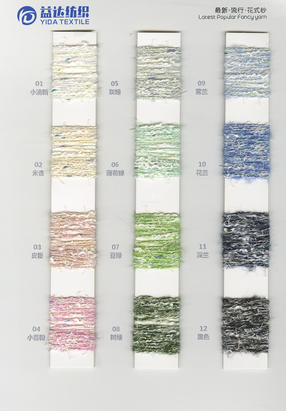 曲棉马海、大肚珍珠棉、波浪棉、泡泡棉、泰迪(羊毛密圈圈)、轻舞飞扬、缤纷云海、米粉纱、包缠纱、羊驼毛、渲彩马海(长毛)、羊驼纤绒纱、羊驼彩尼绒、轻柔马海毛、羊毛圈圈纱、澳羊绒(磨毛纱)、羊毛马海、羊毛曲曲纱、弹力羊毛圈圈纱、珠片纱系列、段染渐变系列等各种纺织纱线。
