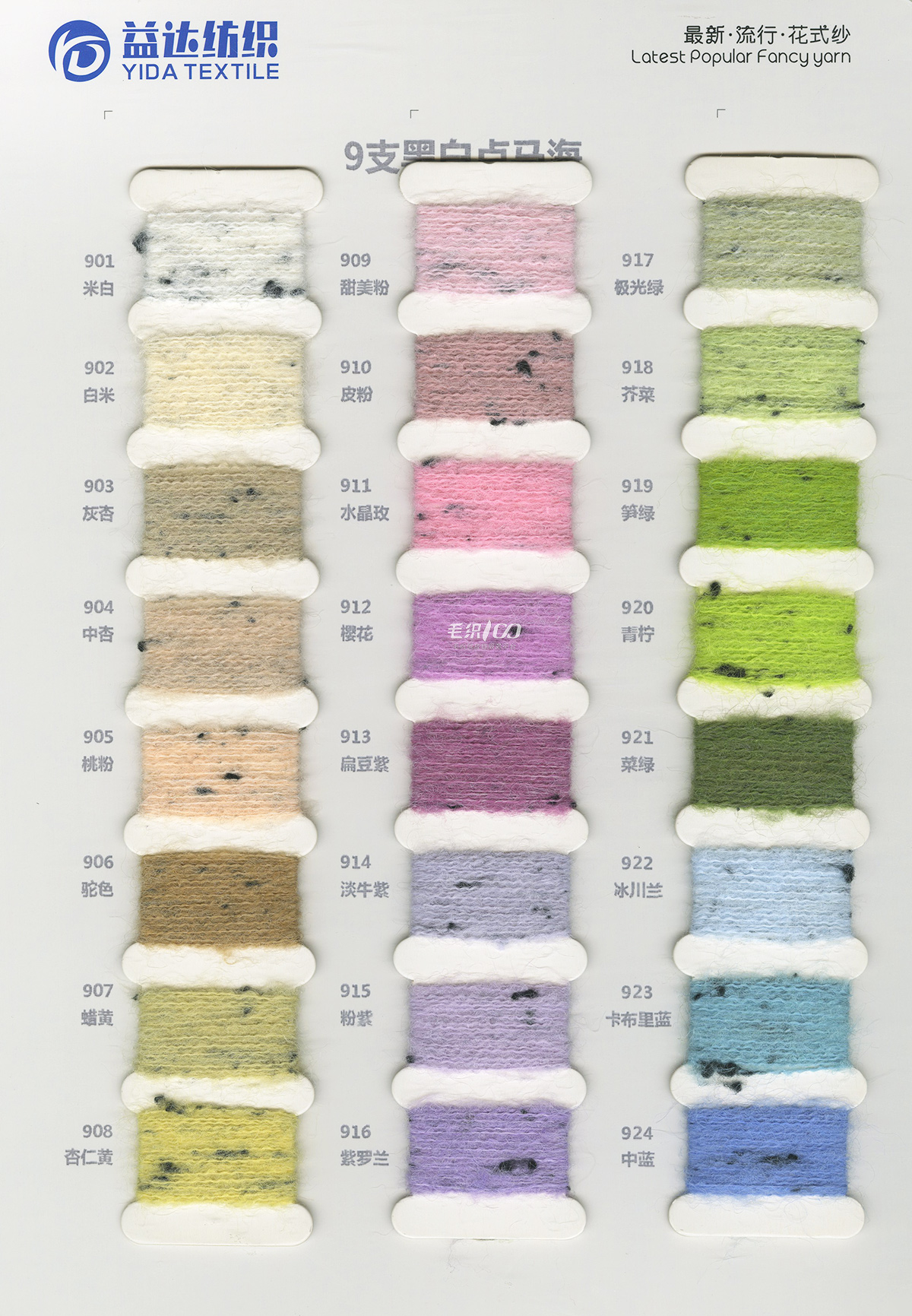 曲棉马海、大肚珍珠棉、波浪棉、泡泡棉、泰迪(羊毛密圈圈)、轻舞飞扬、缤纷云海、米粉纱、包缠纱、羊驼毛、渲彩马海(长毛)、羊驼纤绒纱、羊驼彩尼绒、轻柔马海毛、羊毛圈圈纱、澳羊绒(磨毛纱)、羊毛马海、羊毛曲曲纱、弹力羊毛圈圈纱、珠片纱系列、段染渐变系列等各种纺织纱线。