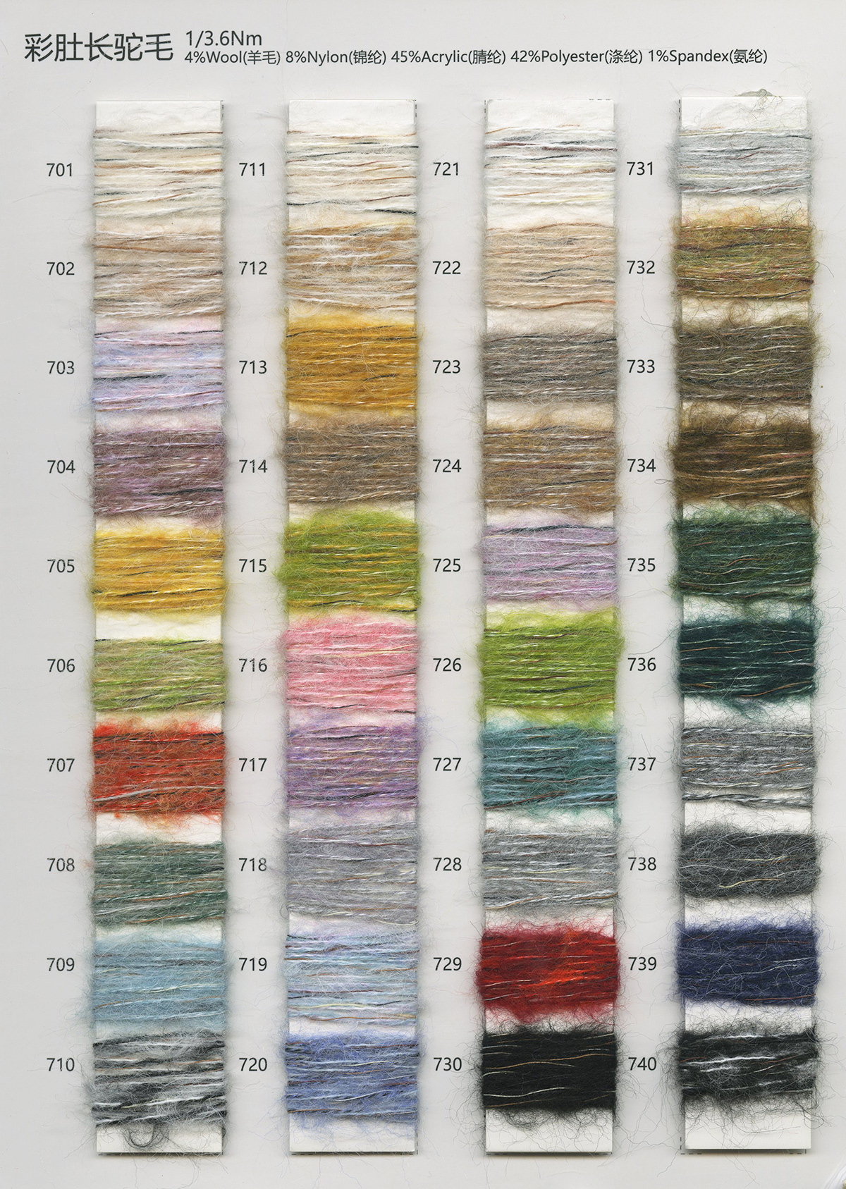 各类时尚花式纱线 中高端马海毛羊驼毛系列 羊绒羊毛混纺系列 浣熊绒系列 高端春夏系列 半精纺产品 精纺产品 涤纶再生产品
