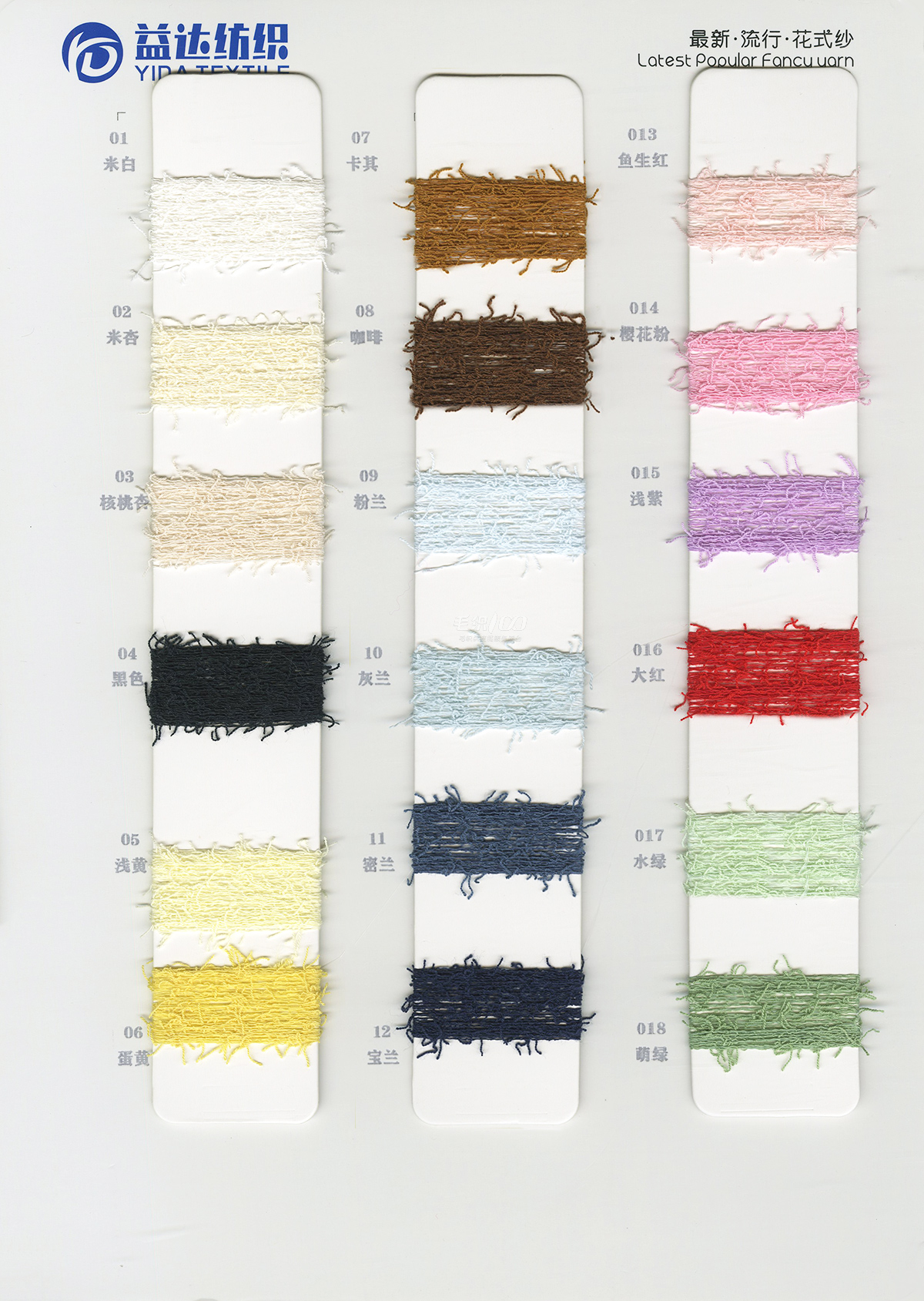 曲棉马海、大肚珍珠棉、波浪棉、泡泡棉、泰迪(羊毛密圈圈)、轻舞飞扬、缤纷云海、米粉纱、包缠纱、羊驼毛、渲彩马海(长毛)、羊驼纤绒纱、羊驼彩尼绒、轻柔马海毛、羊毛圈圈纱、澳羊绒(磨毛纱)、羊毛马海、羊毛曲曲纱、弹力羊毛圈圈纱、珠片纱系列、段染渐变系列等各种纺织纱线。