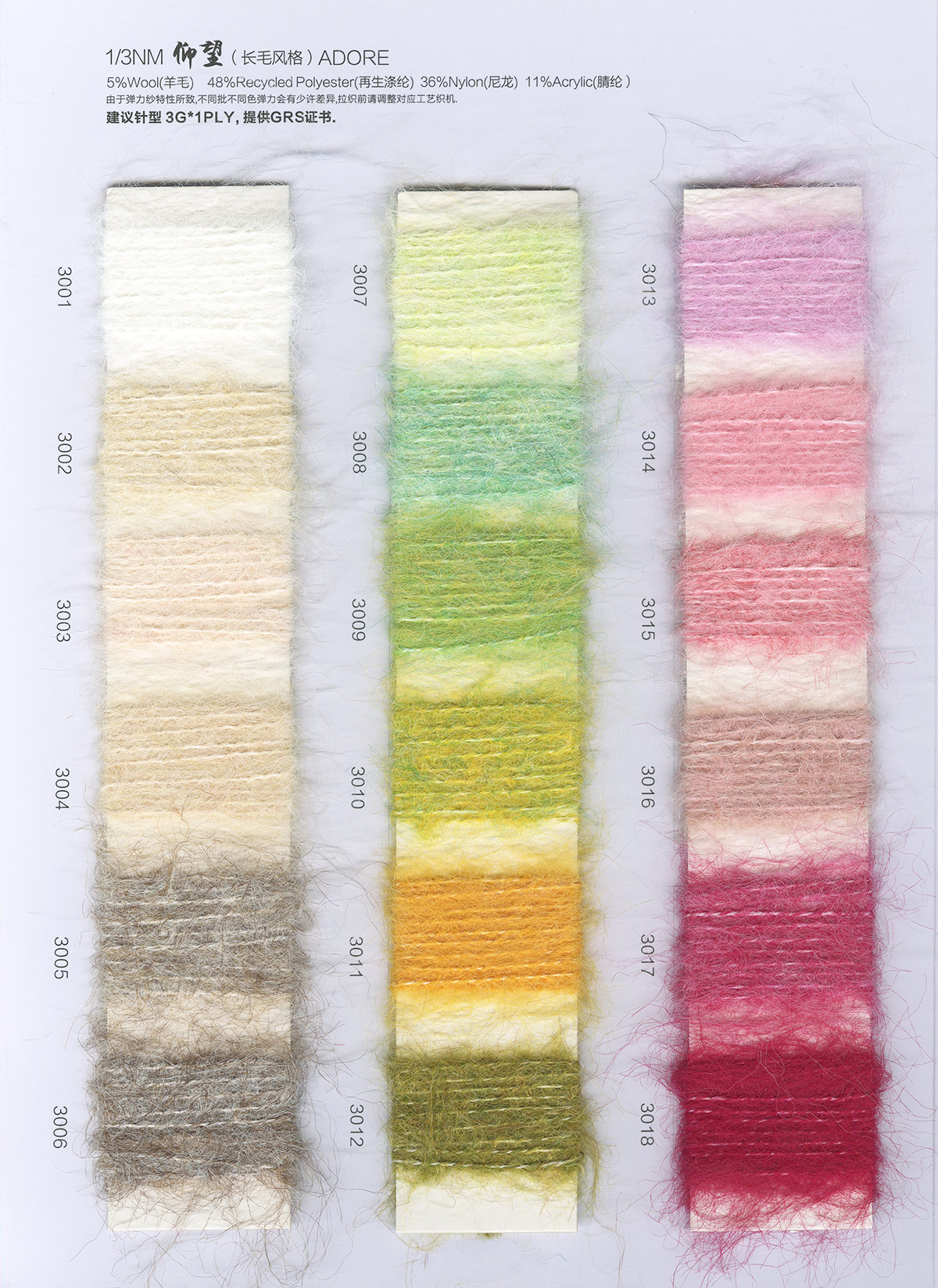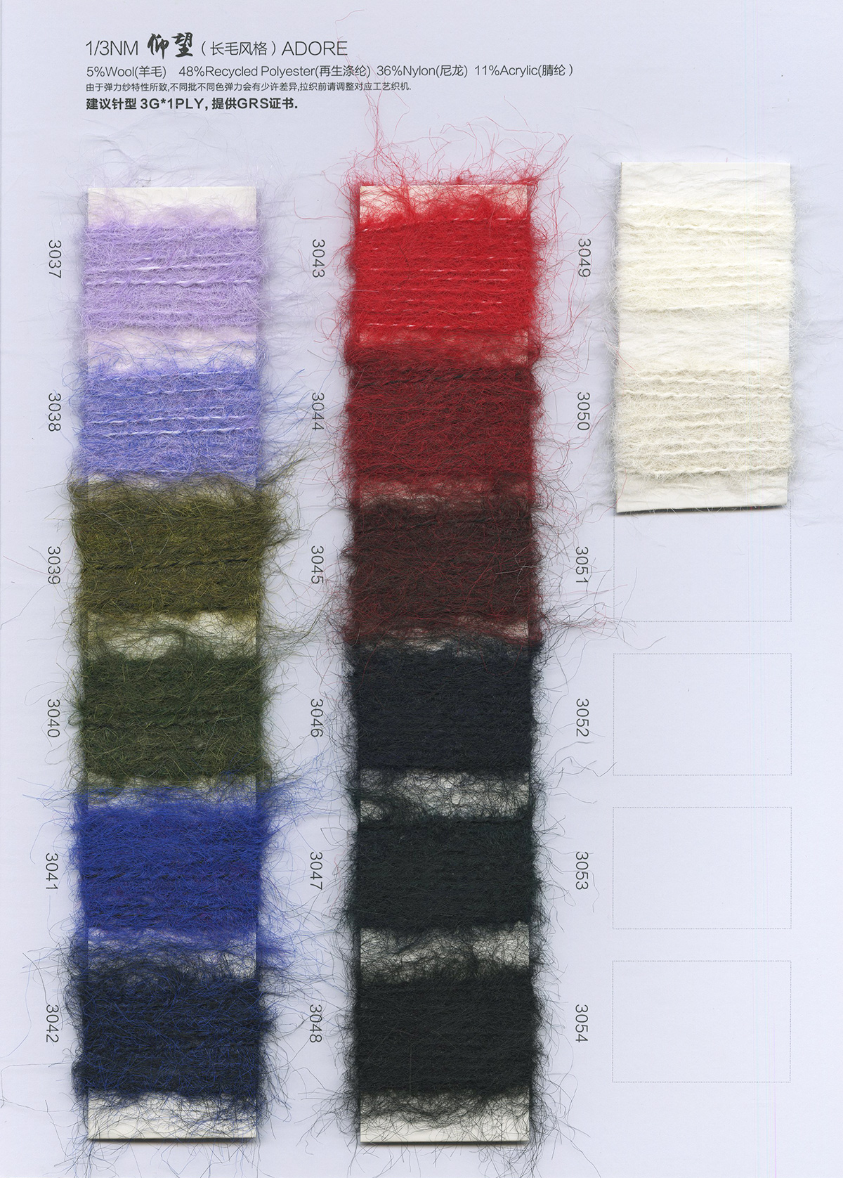 28/6 幻境-羊绒,32/2洋绒纱,48/2羊毛安哥拉,天丝包芯纱、14NM/1德意羊绒、抗起球莫代尔包芯纱、28S/2抗起球澳莱卡、28S/2有色高弹包芯纱、5.8/13支居家绒、28S/2抗起球安迪绒、18NM/1小呢绒、26S/2超细北极绒、5.5NM/1羊毛r绒、14NM/1中比例弹力马海毛、1/9NM羊驼毛、1/4.5NM高端羊驼