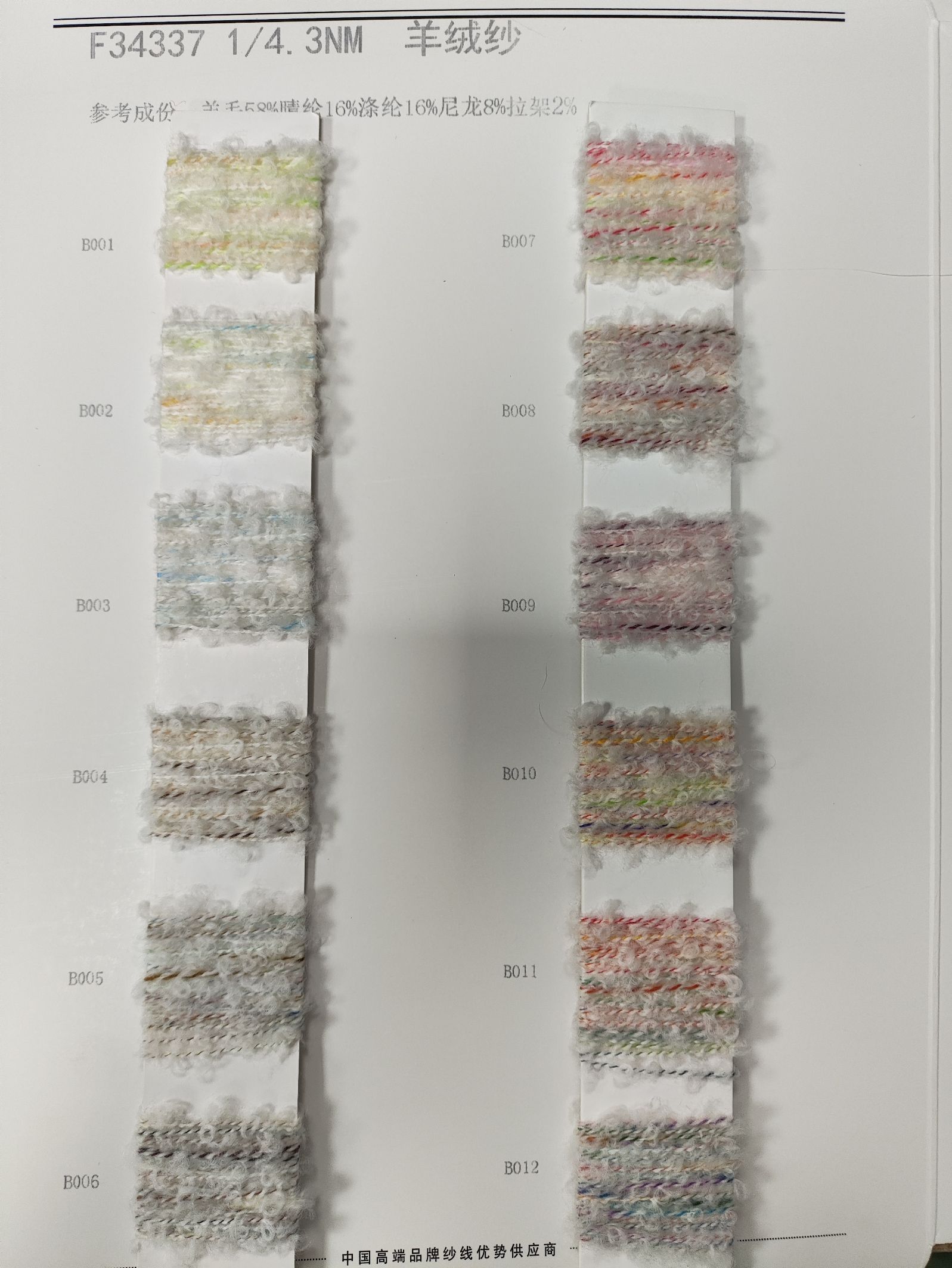 各类时尚花式纱线 中高端马海毛羊驼毛系列 羊绒羊毛混纺系列 浣熊绒系列 高端春夏系列 半精纺产品 精纺产品 涤纶再生产品