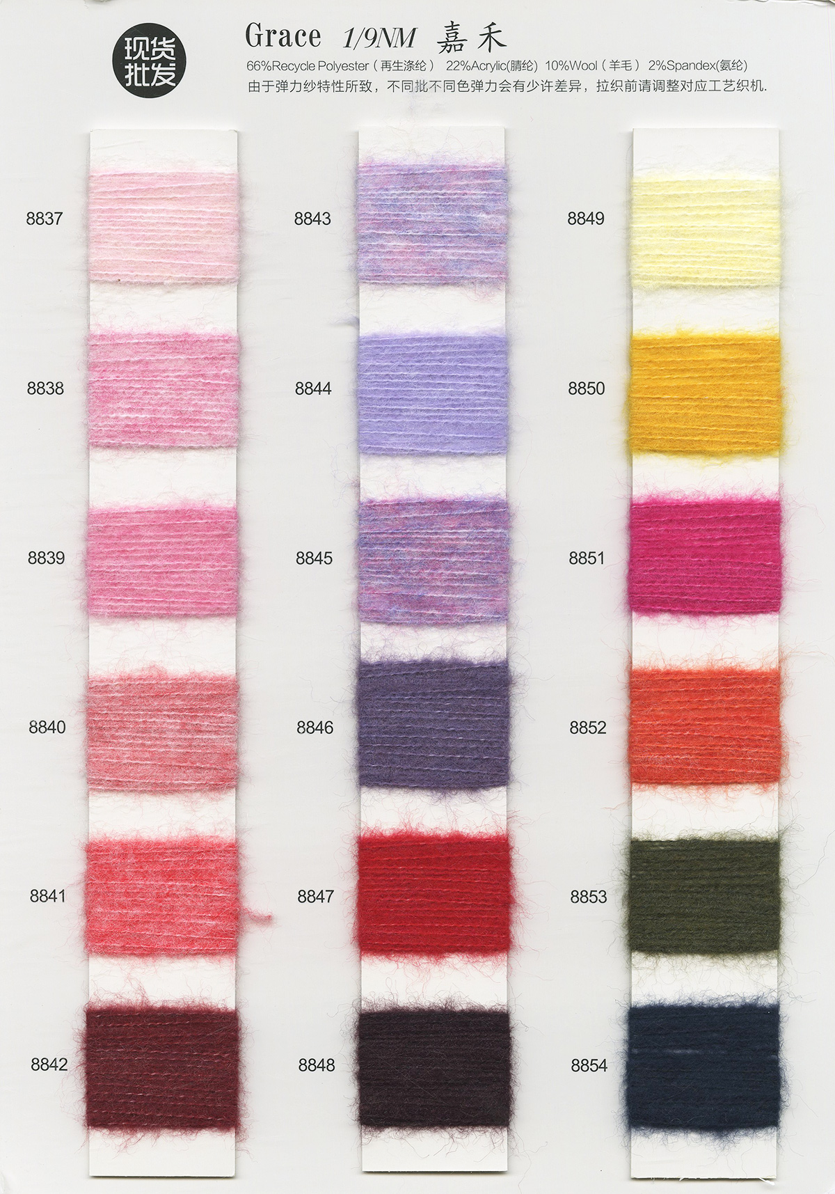 羊驼系列、马海毛系列、羊毛系列、特种动物纤维、绒类、花式纱系列(磨毛纱、拉毛纱、圈圈纱、喷毛纱)