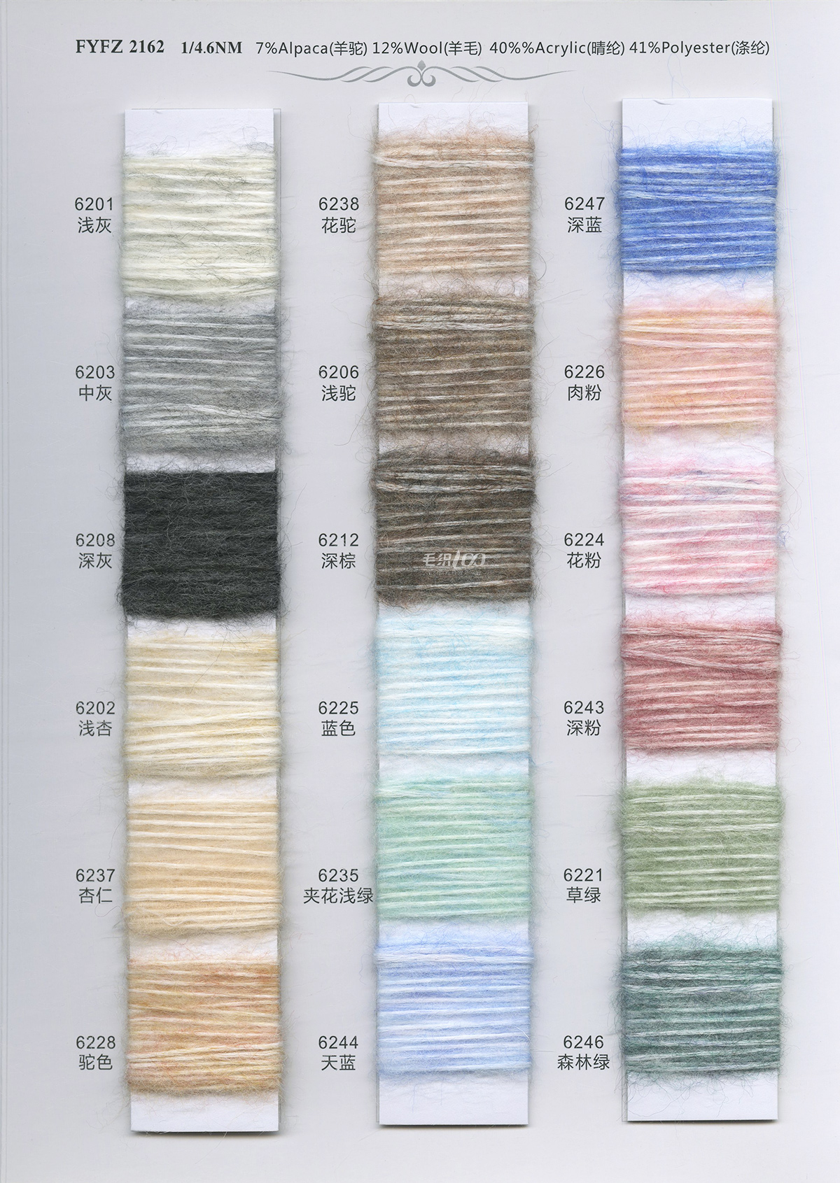 马海毛系列、羊驼毛系列、骆马绒、花式纱开发等