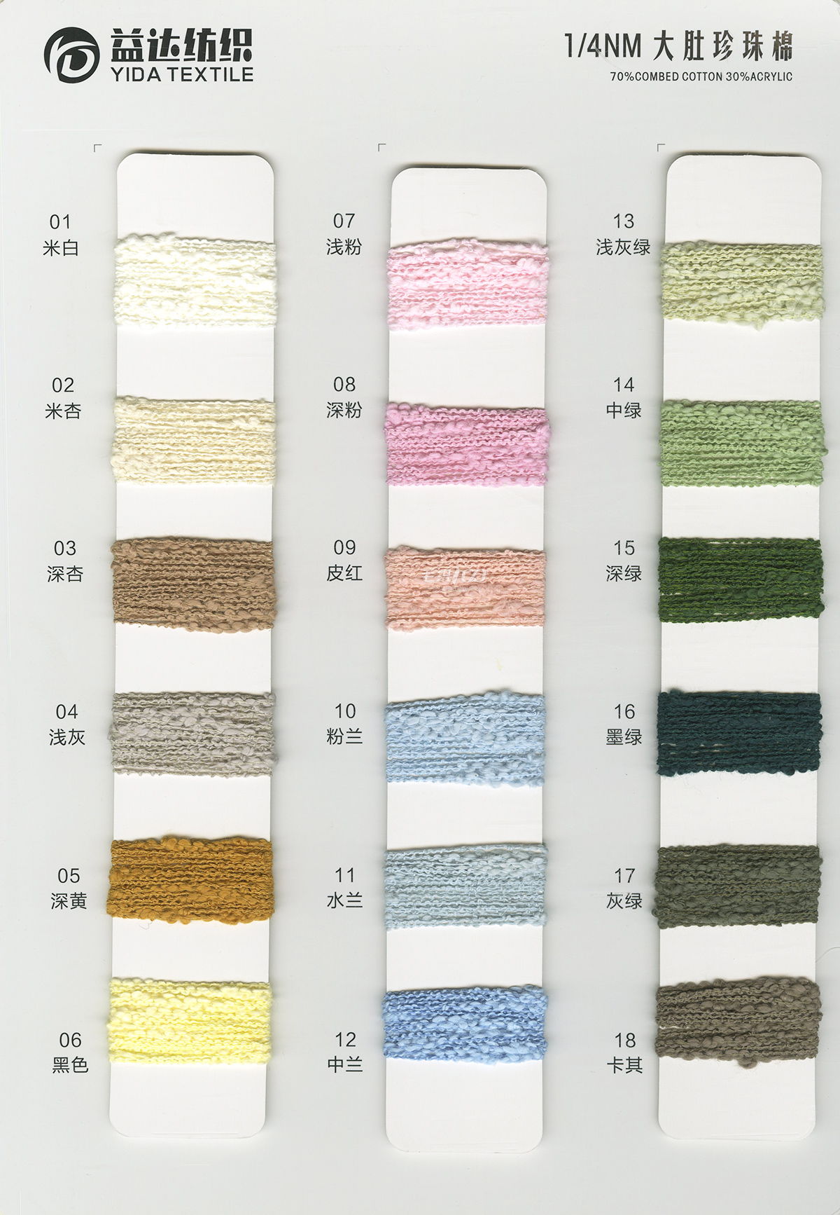 曲棉马海、大肚珍珠棉、波浪棉、泡泡棉、泰迪(羊毛密圈圈)、轻舞飞扬、缤纷云海、米粉纱、包缠纱、羊驼毛、渲彩马海(长毛)、羊驼纤绒纱、羊驼彩尼绒、轻柔马海毛、羊毛圈圈纱、澳羊绒(磨毛纱)、羊毛马海、羊毛曲曲纱、弹力羊毛圈圈纱、珠片纱系列、段染渐变系列等各种纺织纱线。