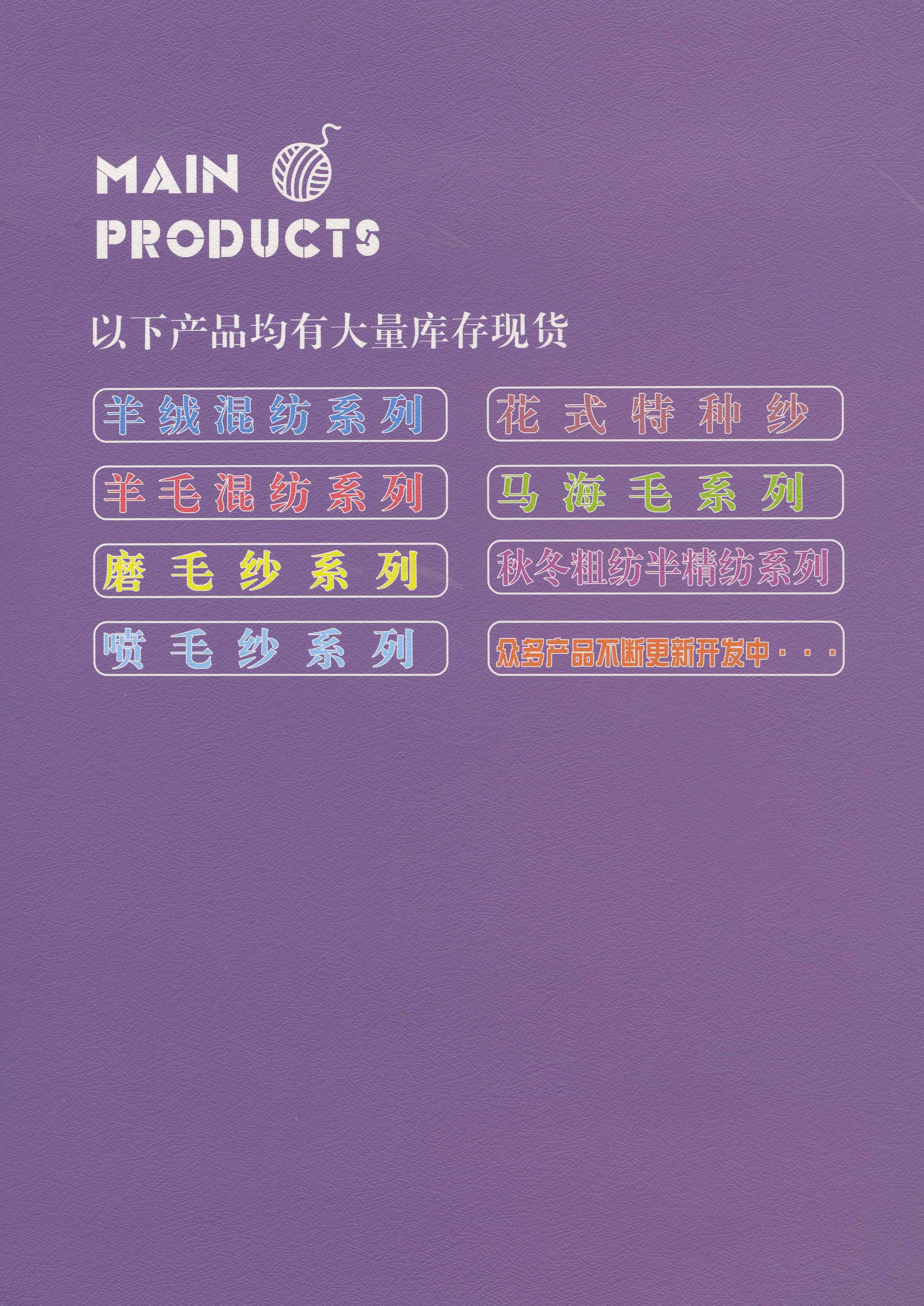 我们立足广东大朗,专业经营各类纱线。涵盖从基础的常规纱线,到羊驼喷毛纱、磨毛纱、圈圈纱、珠片纱等独具创意的花式特种纱,更有羊毛、羊绒、羊驼、马海等高档毛绒原料。无论您是追求经典款式,还是想要独特新颖的订制纱线,我们都能为您的纺织需求提供全方位、高品质的解决方案 。