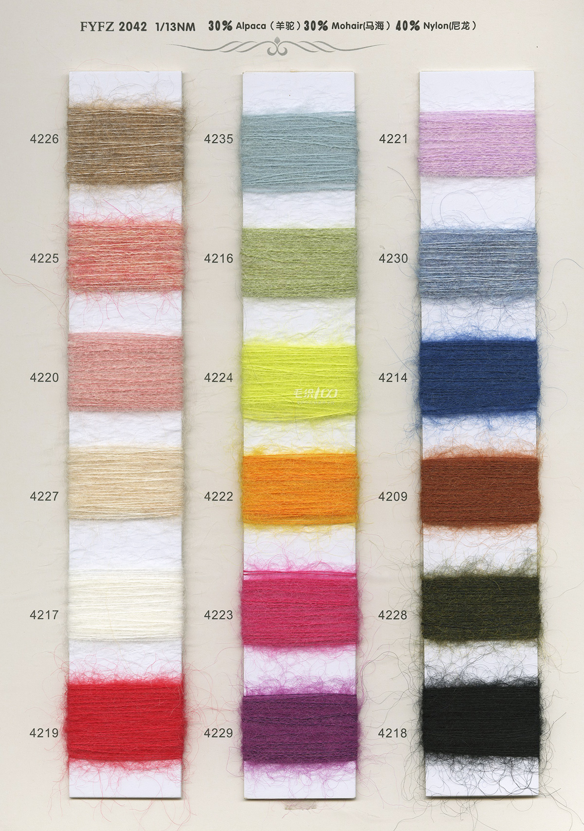马海毛系列、羊驼毛系列、骆马绒、花式纱开发等