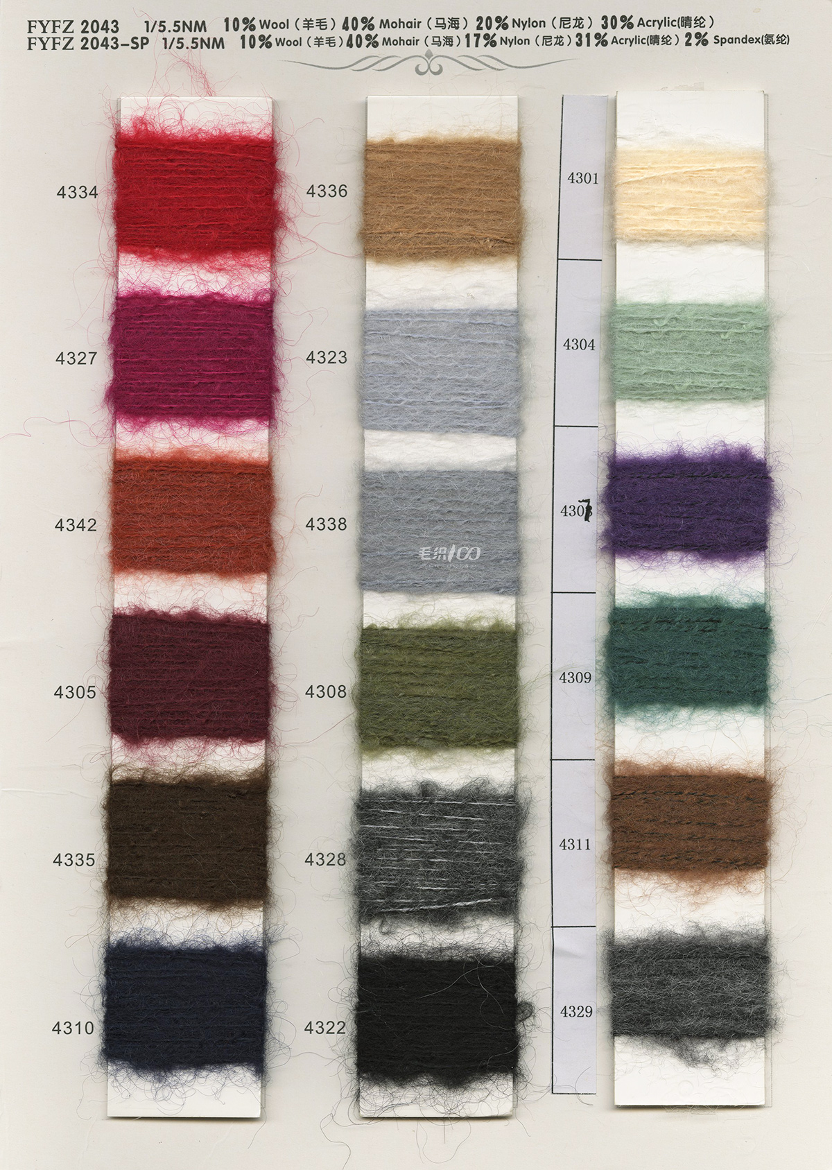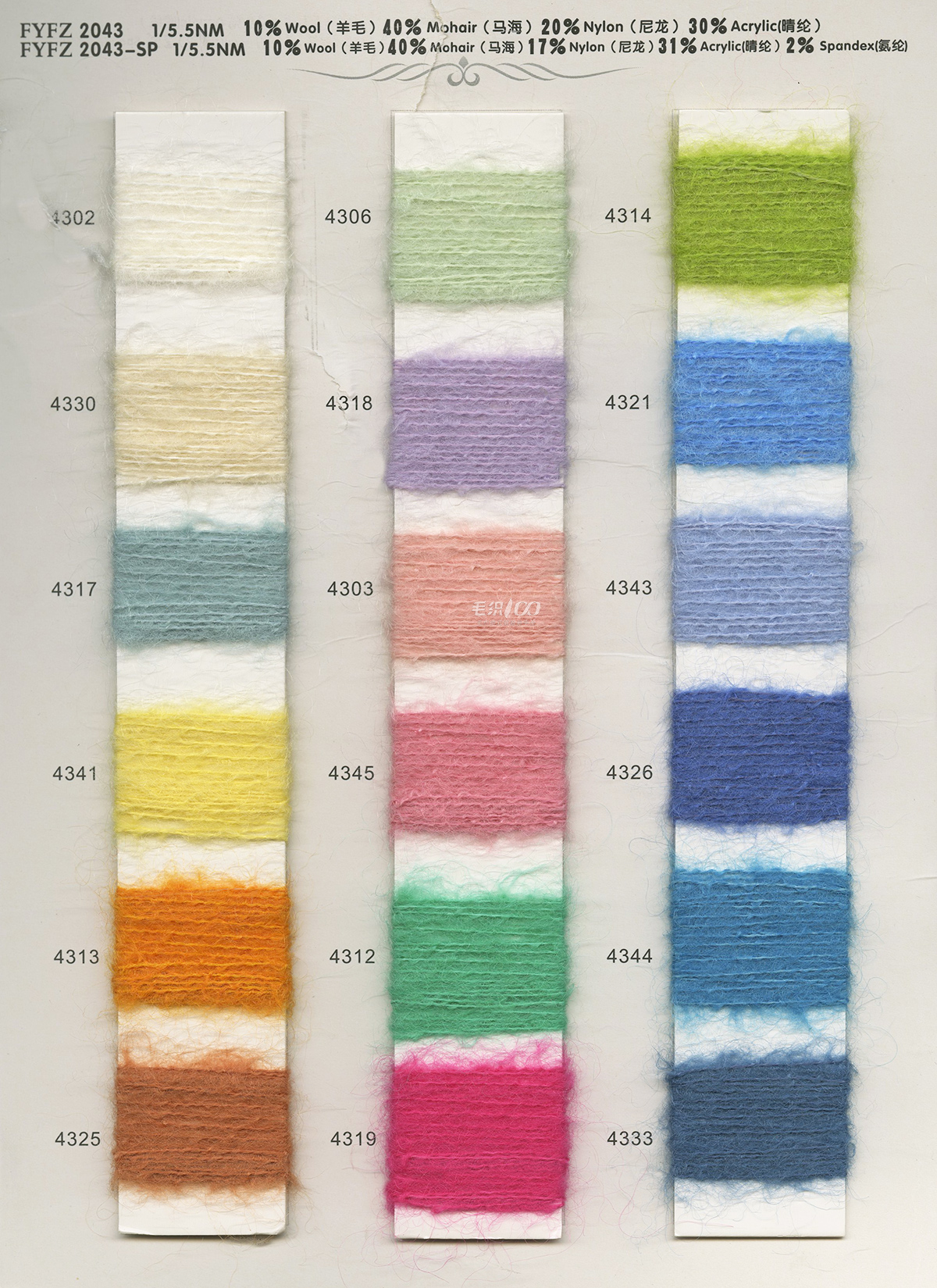 马海毛系列、羊驼毛系列、骆马绒、花式纱开发等