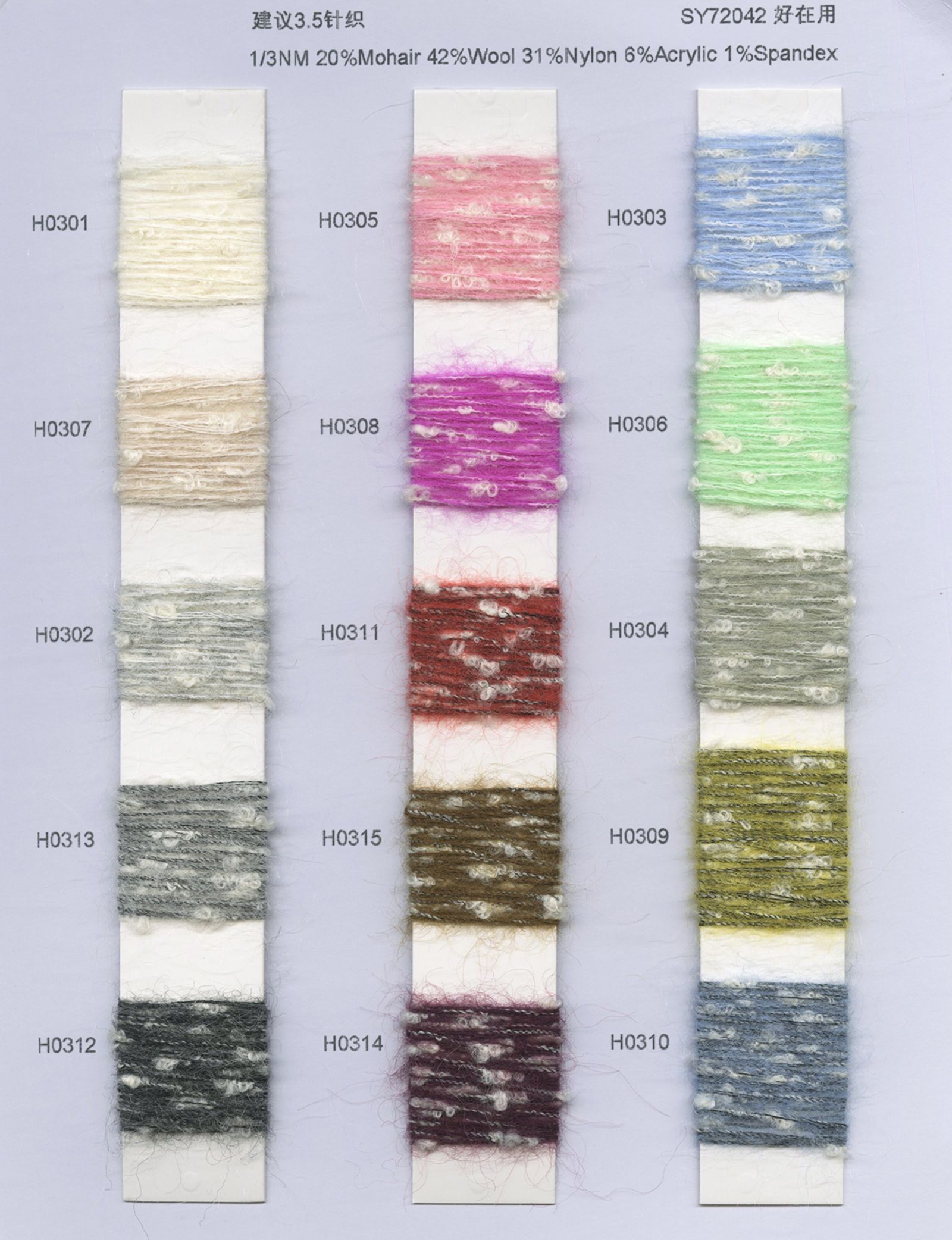 各类时尚花式纱线 中高端马海毛羊驼毛系列 羊绒羊毛混纺系列 浣熊绒系列 高端春夏系列 半精纺产品 精纺产品 涤纶再生产品
