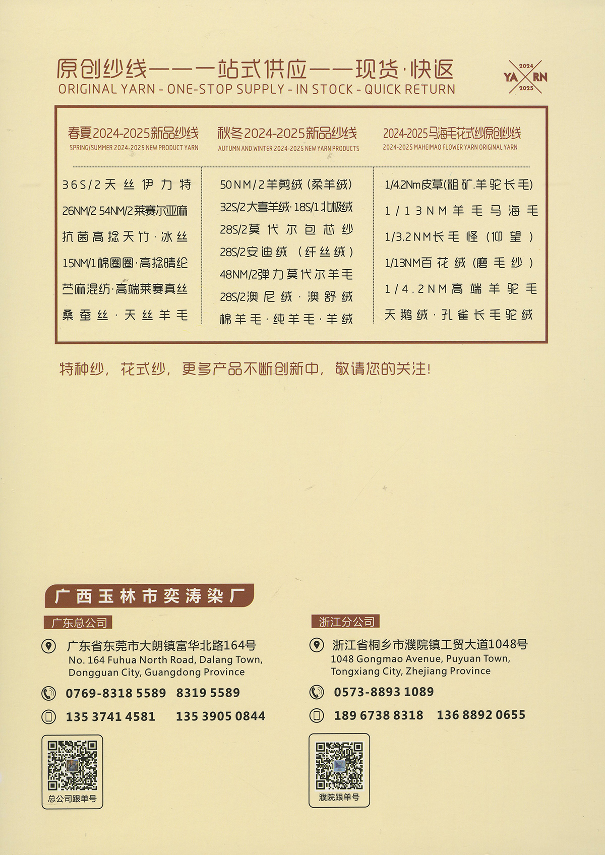 原创纱线---一站式供应---现货~快返 ORIGINAL YARN-ONE-STOP SUPPLY-INSTOCC-QUICKRETURN 2025-2026双抗超柔莫代尔绒(新产品) 2025春夏新品:36S/2天丝伊力特, 2025秋冬新品:羊剪绒 ,莫代尔包芯纱,18S/2北极绒,天丝羊毛,32支大喜羊绒,莱赛尔亚麻,澳尼绒,澳舒绒。