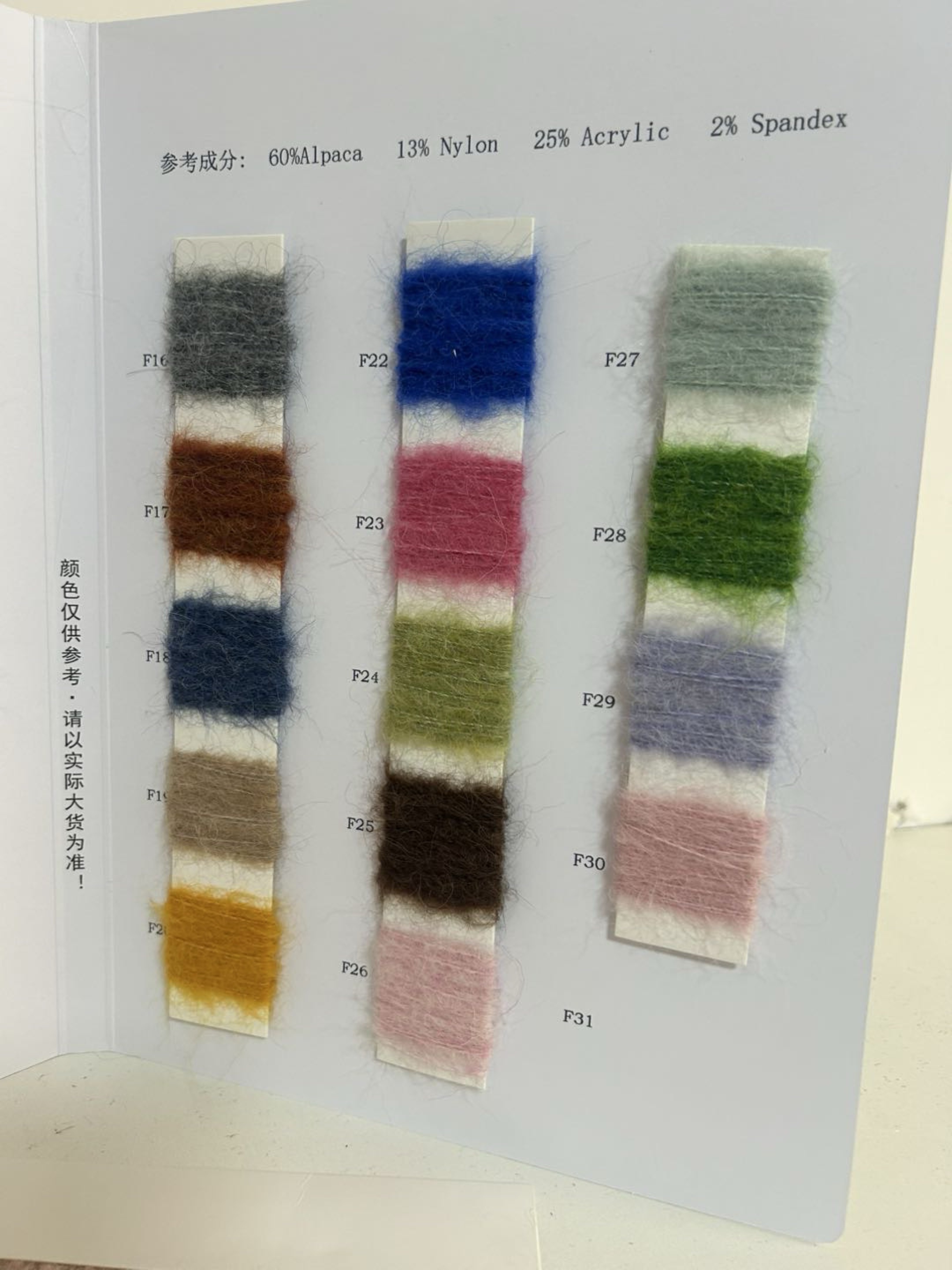 本公司在毛织纺织行业中专注于中高端产品的开发与生产,涵盖多样的加工产品和花式纱线。加工产品包括高品质的羊毛、羊绒、狐绒等天然纤维纱线,广泛应用于奢华服装、家纺及工艺品。此外,我们还推出多样化的花式纱线,如绒毯纱、彩色纱、光泽纱和立体花式纱,满足高端设计需求。公司坚持环保材料和先进工艺,确保产品具有卓越的手感、丰富的质感和独特的视觉效果,致力于为客户提供创新、优质的毛织纺织解决方案,塑造行业的高端标杆。