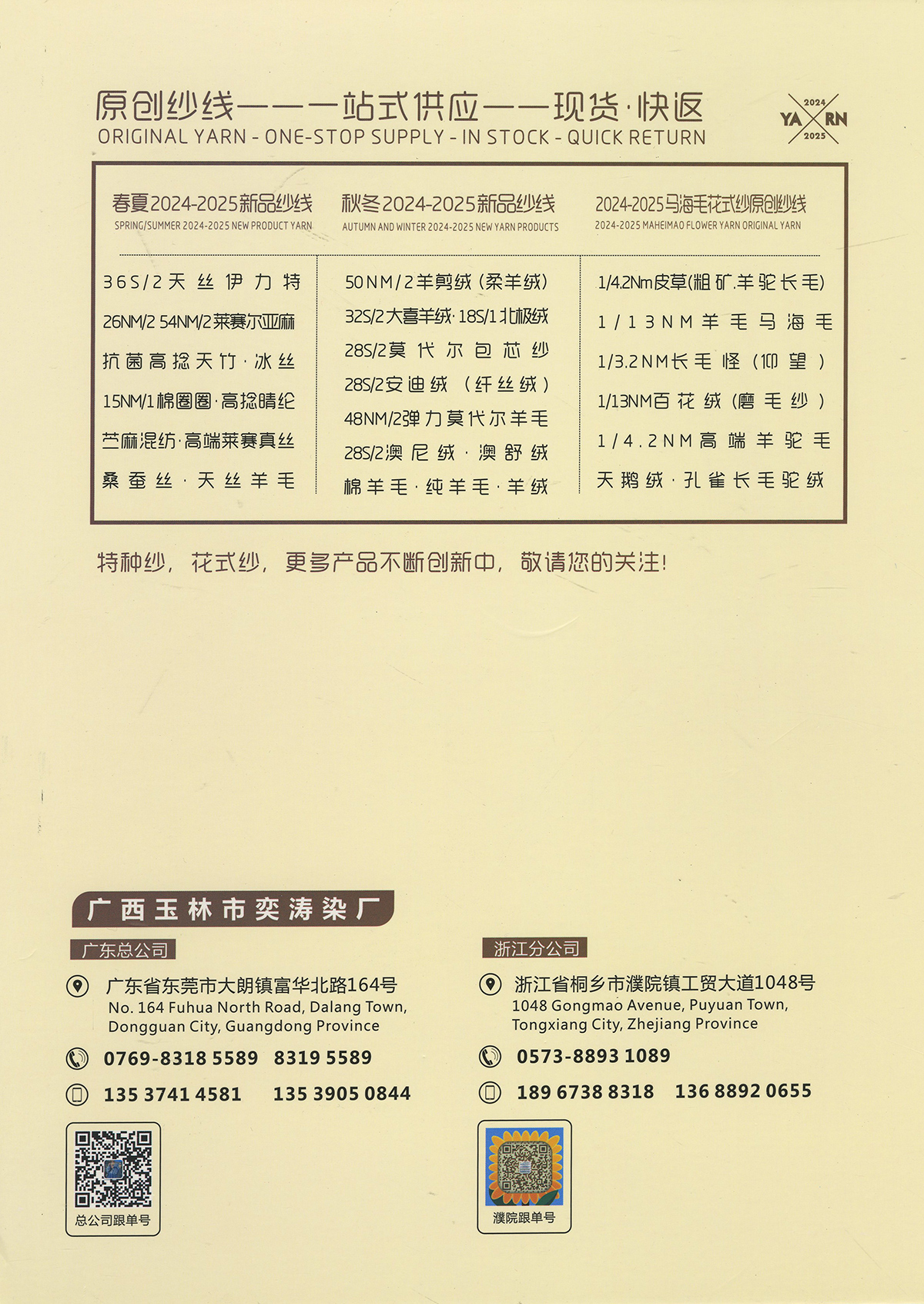 原创纱线---一站式供应---现货~快返 ORIGINAL YARN-ONE-STOP SUPPLY-INSTOCC-QUICKRETURN 2025-2026双抗超柔莫代尔绒(新产品) 2025春夏新品:36S/2天丝伊力特, 2025秋冬新品:羊剪绒 ,莫代尔包芯纱,18S/2北极绒,天丝羊毛,32支大喜羊绒,莱赛尔亚麻,澳尼绒,澳舒绒。