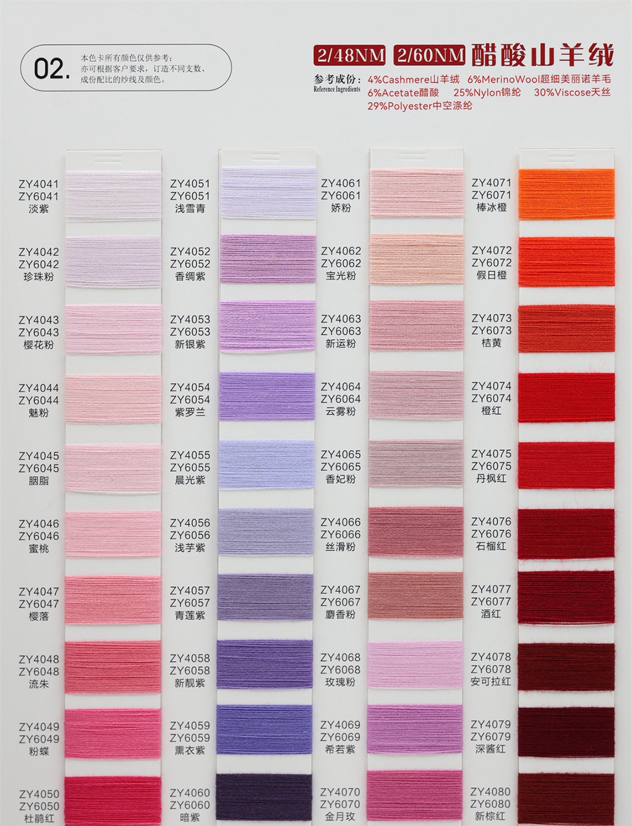 各类时尚花式纱线 中高端马海毛羊驼毛系列 羊绒羊毛混纺系列 浣熊绒系列 高端春夏系列 半精纺产品 精纺产品 涤纶再生产品