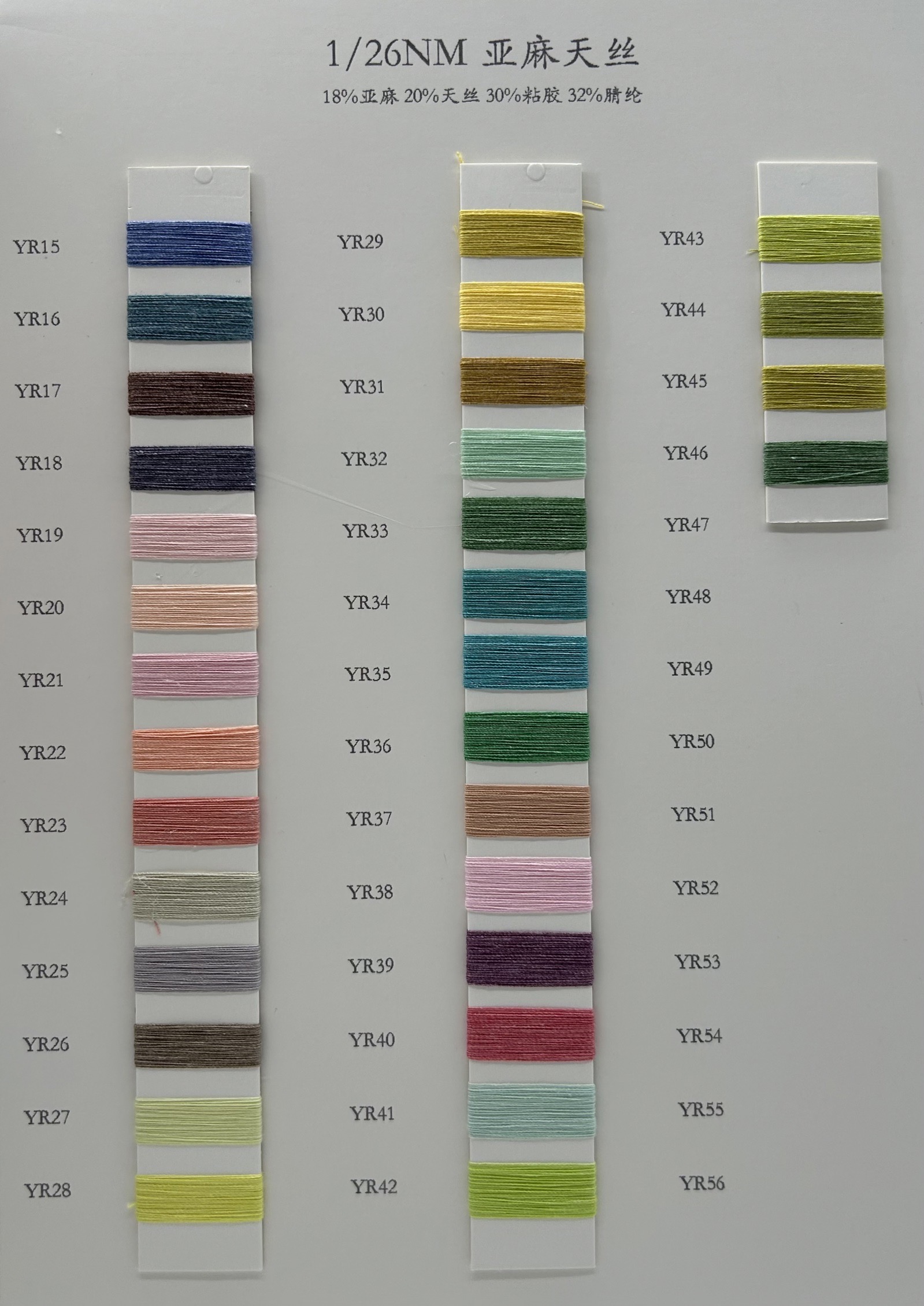 亲爱的设计师们,我们自豪地推出一款专为春夏季设计的全新纱线——亚麻天丝。这款纱线由18%亚麻、20%天丝、30%粘胶和32%腈纶精心配比而成,为您带来无与伦比的舒适感和独特的质感。