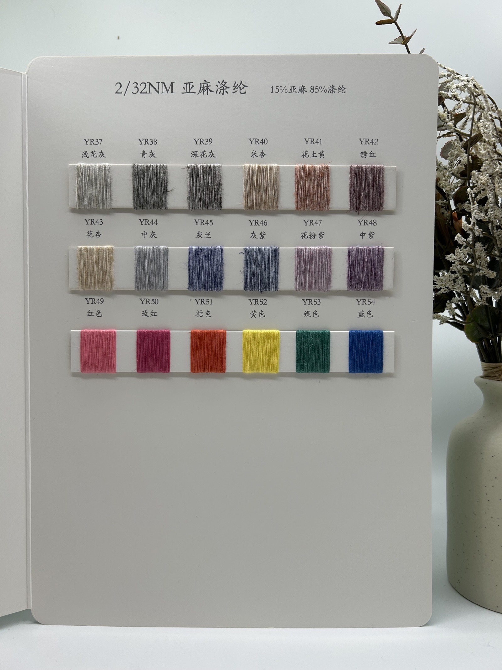 【产品名称】:亚麻涤纶混纺纱线【成分比例】:15%亚麻 + 85%涤纶,结合了天然与合成纤维的优点,带来舒适透气的穿着体验。【规格】:2/32NM,精细的纱线结构,适合多种编织工艺,满足不同设计需求。【适用季节】:春夏,轻盈透气,吸湿排汗,为您打造清爽舒适的春夏时尚。这款亚麻涤纶混纺纱线,是您春夏季节的理想选择。它不仅具有亚麻的自然质感和透气性,还兼具涤纶的耐用性和易打理性。无论您是制作服装、家居用品还是配饰,这款纱线都能满足您的需求,为您的作品增添一抹清新的春日气息。