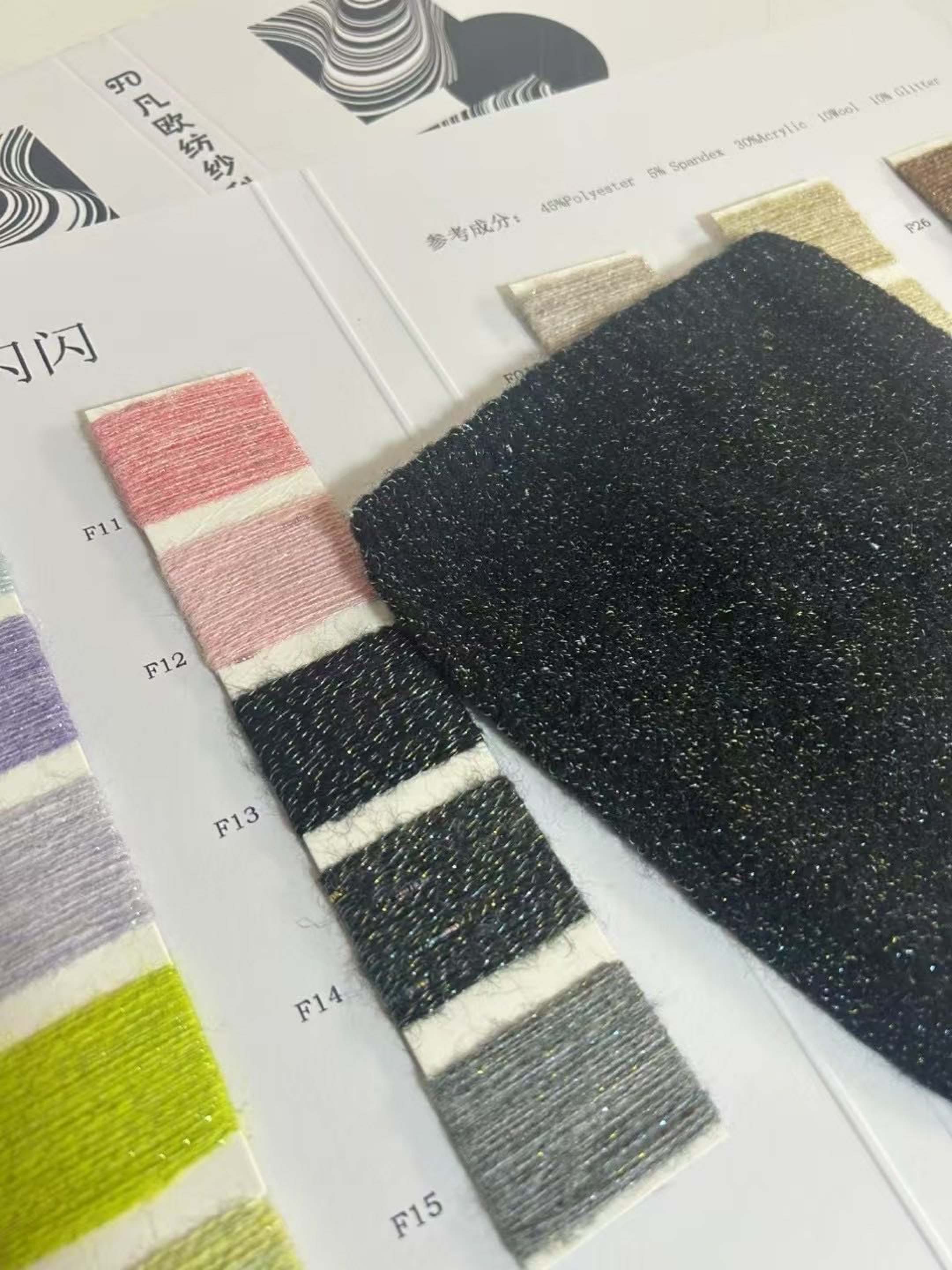 45%Polyester 5% Spandex 30%Acrylic 10Wool 10% Glitter