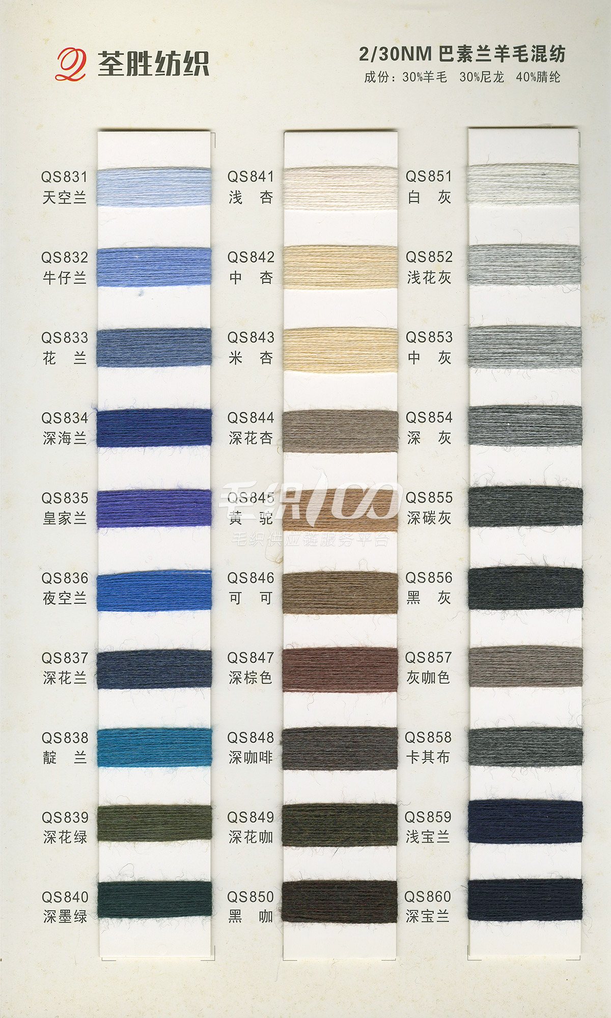 各种比例羊毛混纺纱、曲珠、羊毛金银线、棉纱、膨体棉晴、羊仔毛(兔毛)、洗绒羊毛、丝光抗起球三七、五五毛花式纱等各种特种纱