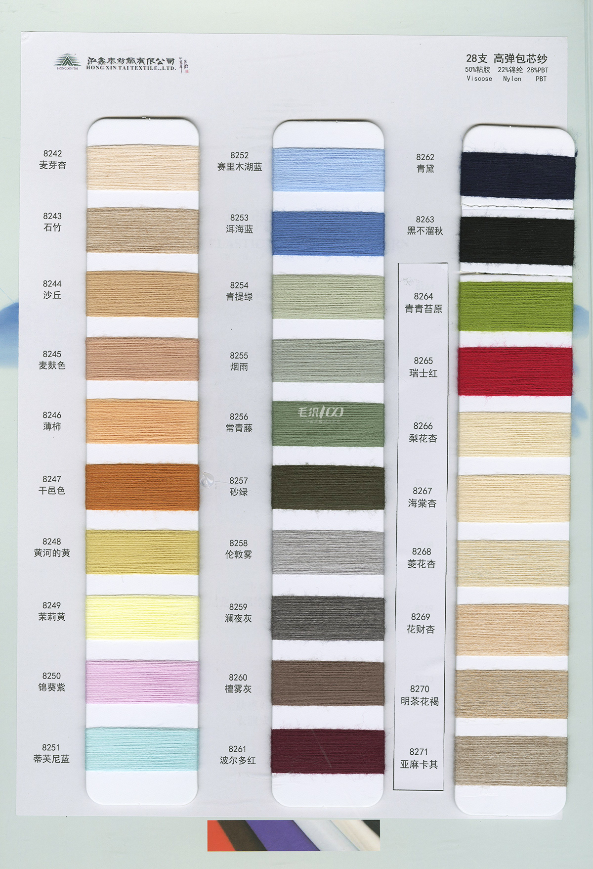 各支数双曲(冰麻)、高弹/兔绒包芯纱、色胚俱全 可根据客户样品进行订货或加工