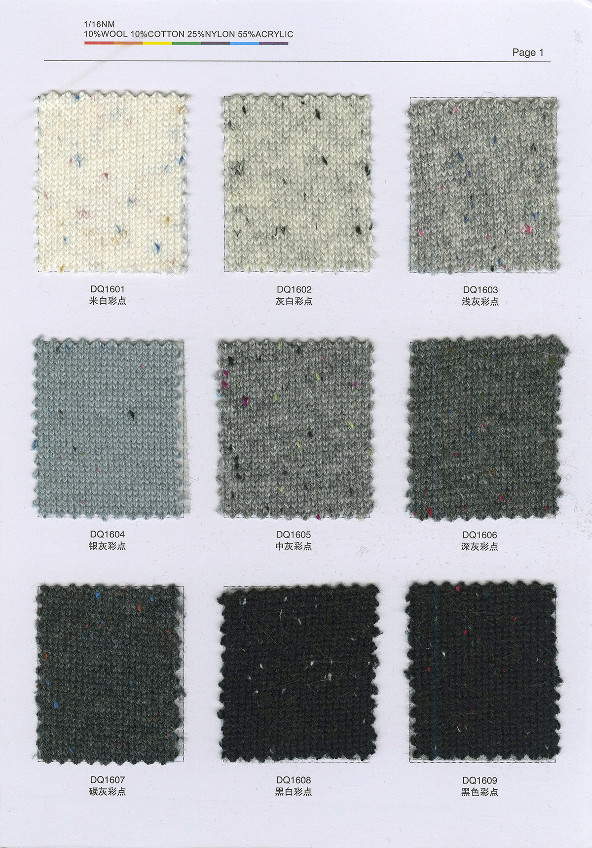 55%腈纶25%尼龙10%棉10%羊毛(羊毛彩点纱)