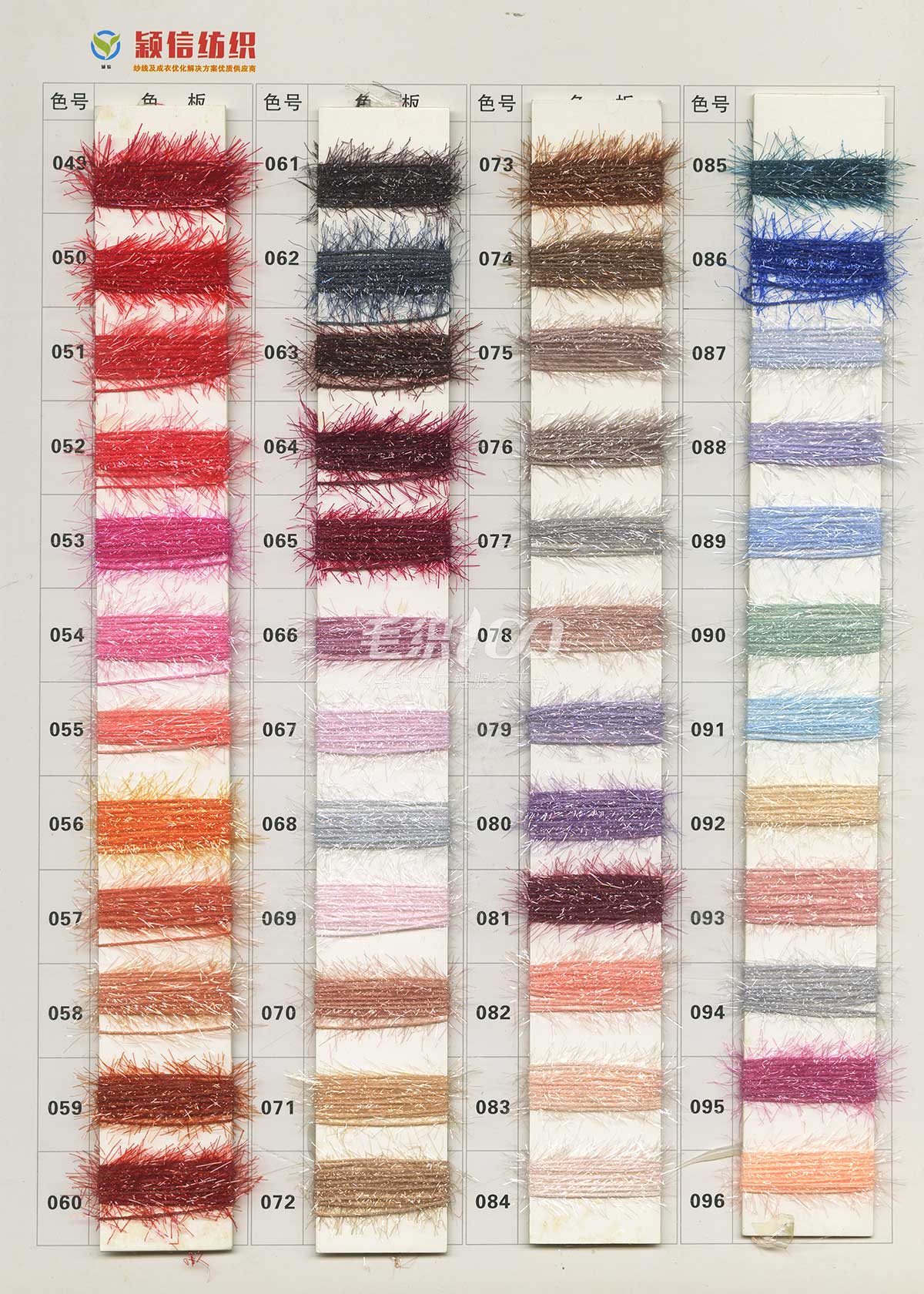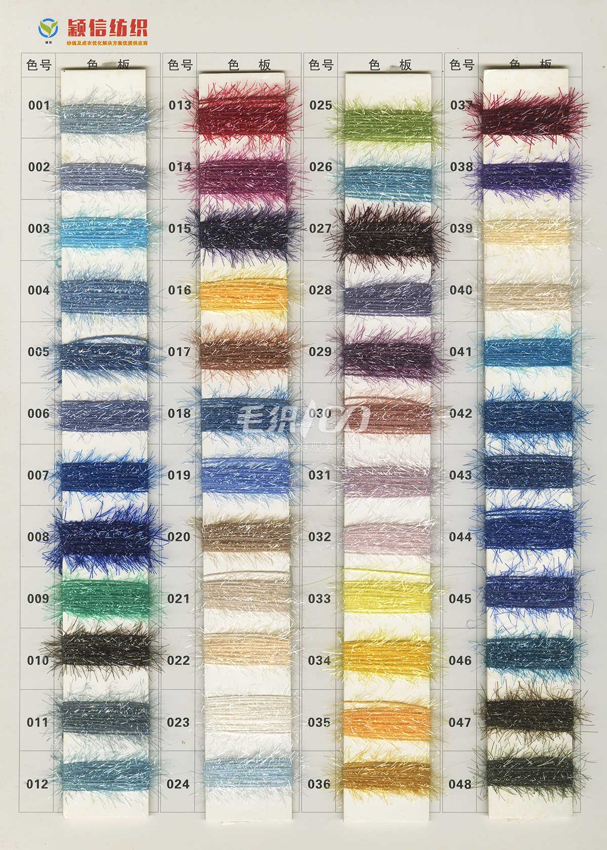 珠片纱系列 彩点纱系列 磨毛绒系列 环保再生系列 抗菌系列 马海毛系列 圈圈纱系列 渐变纱系列 段染系列 羊毛混纺系列 春夏特种纱系列 等各类新型花式纱