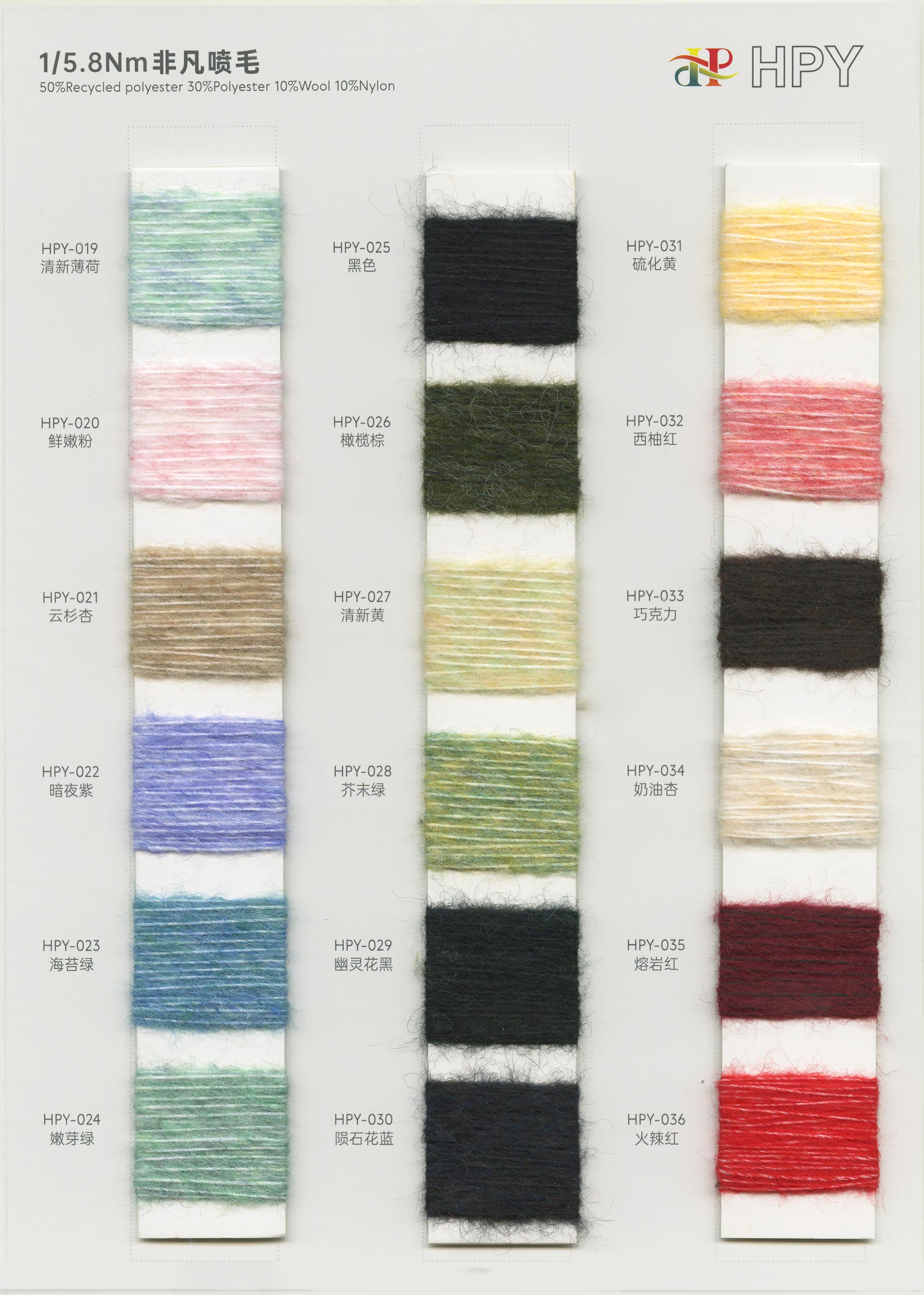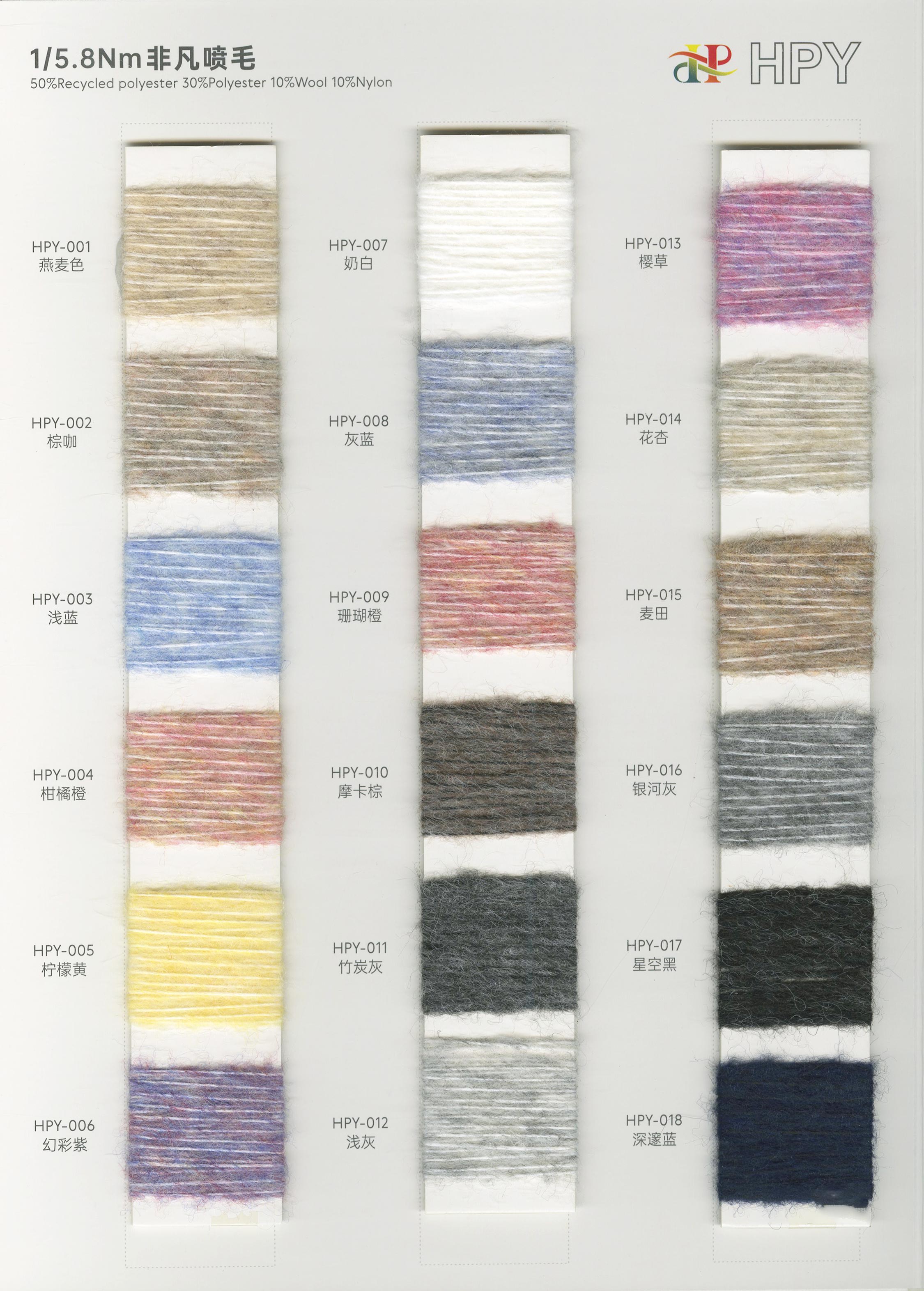 6/1维丝可喷毛绒、14/1雅克牛绒、5.5/1雪花骆马绒、3.5/1绚丽喷毛绒、8/1羊驼喷毛绒、5.5/1骆马喷毛绒、3.5/1亮彩喷毛绒、15/1迷你羊驼圈圈、14/1纤柔马海圈圈、7.5支马海圈圈纱、13/1羊毛长毛、9.8支骆马长毛、5.5支羊驼长毛、14/1华咔约马海、12/1北美浣熊绒、9/1阿拉善骆驼绒、14/2芙尔丽绒、6/2新丝丽绒、2/16南非再生驼绒