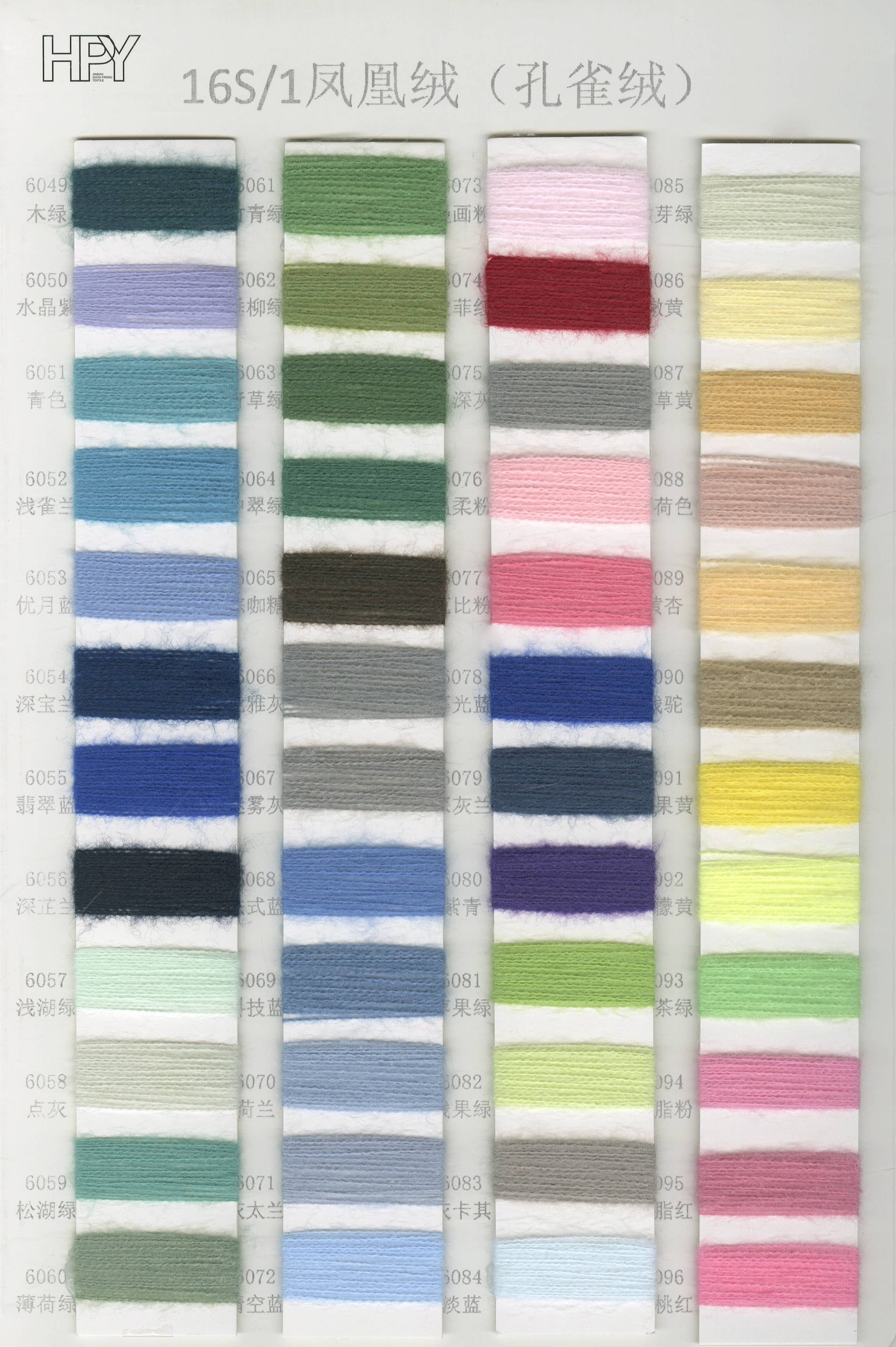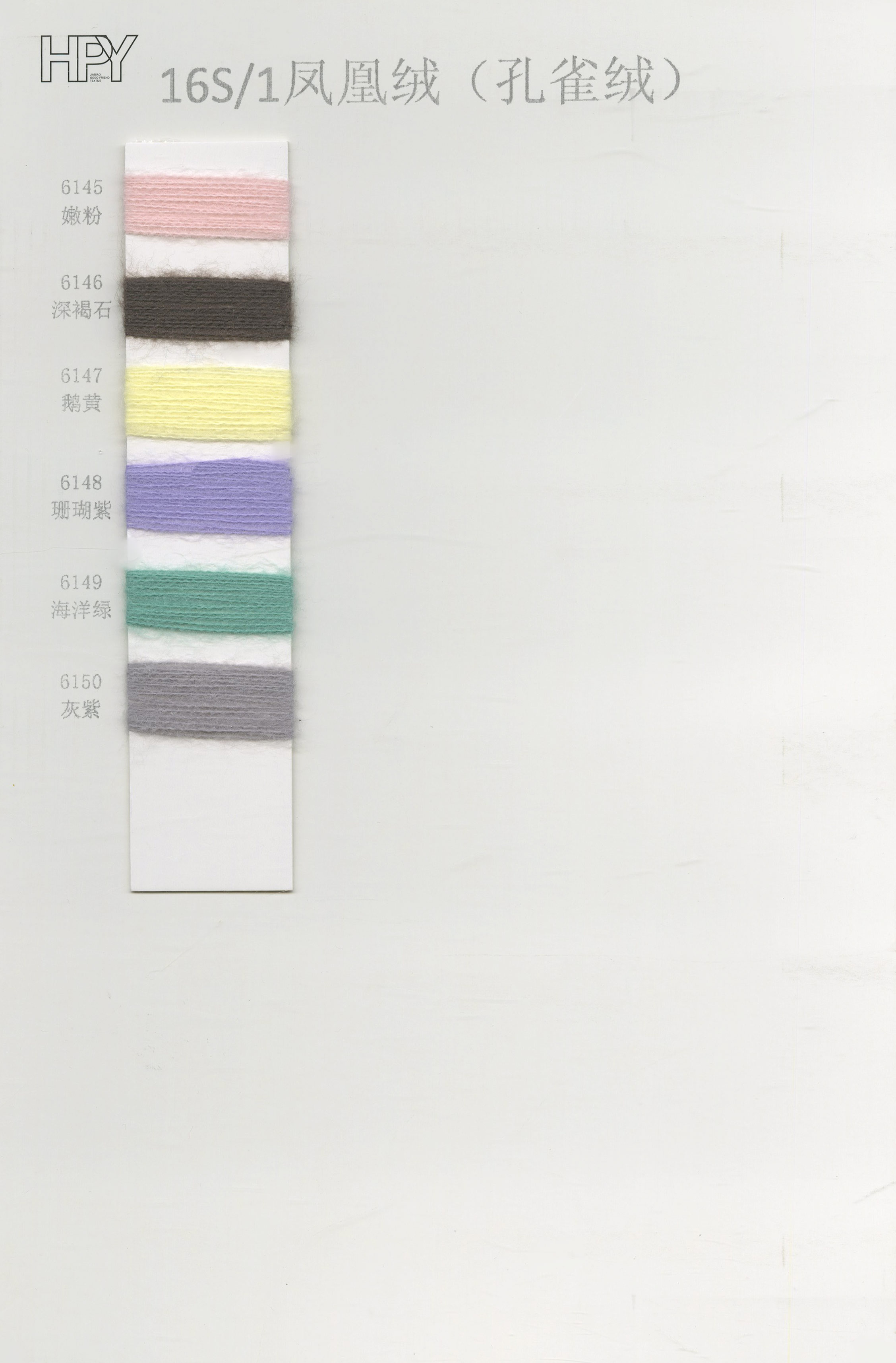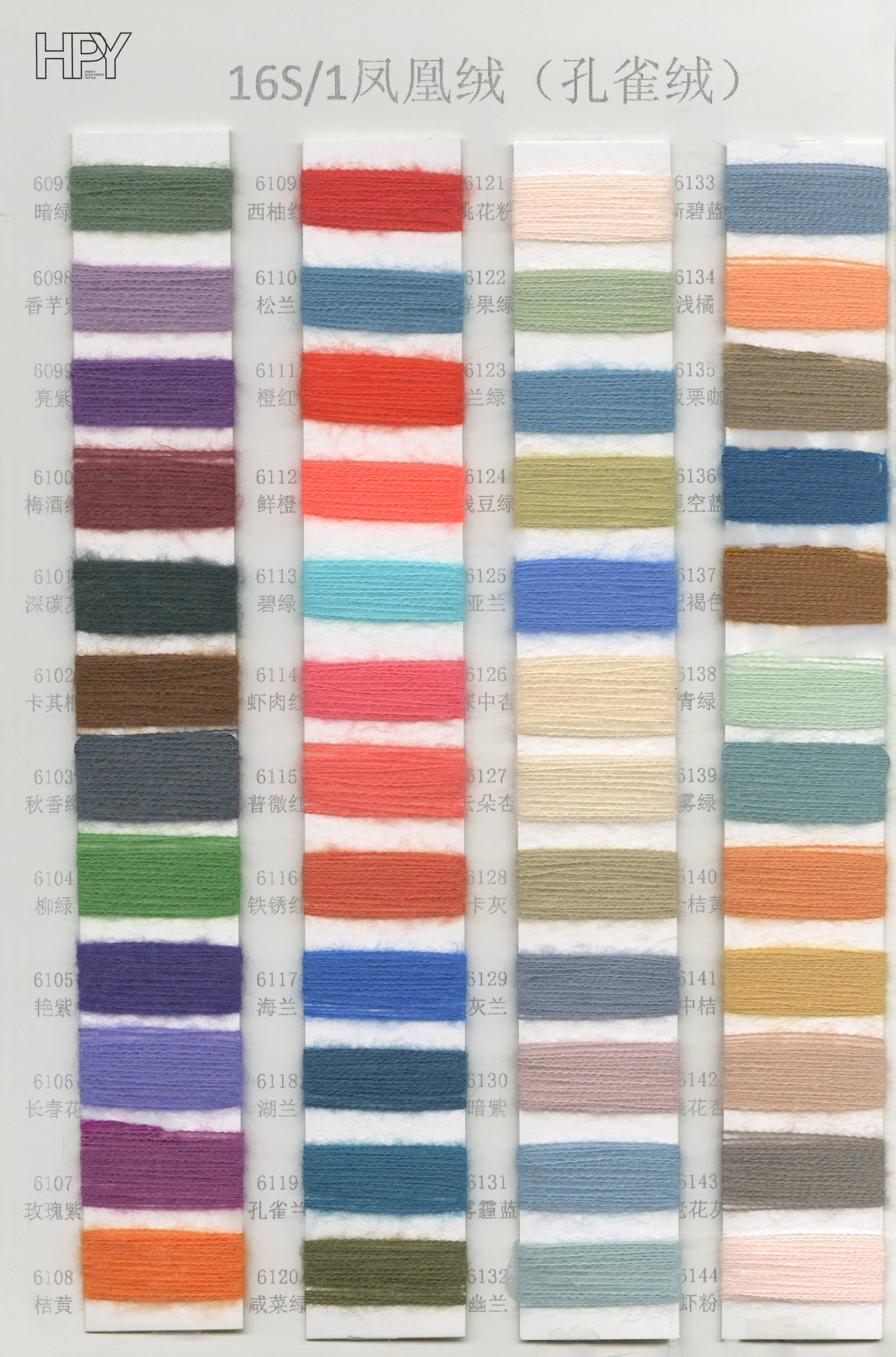 6/1维丝可喷毛绒、14/1雅克牛绒、5.5/1雪花骆马绒、3.5/1绚丽喷毛绒、8/1羊驼喷毛绒、5.5/1骆马喷毛绒、3.5/1亮彩喷毛绒、15/1迷你羊驼圈圈、14/1纤柔马海圈圈、7.5支马海圈圈纱、13/1羊毛长毛、9.8支骆马长毛、5.5支羊驼长毛、14/1华咔约马海、12/1北美浣熊绒、9/1阿拉善骆驼绒、14/2芙尔丽绒、6/2新丝丽绒、2/16南非再生驼绒