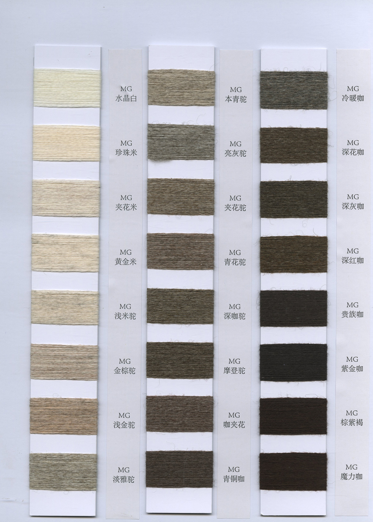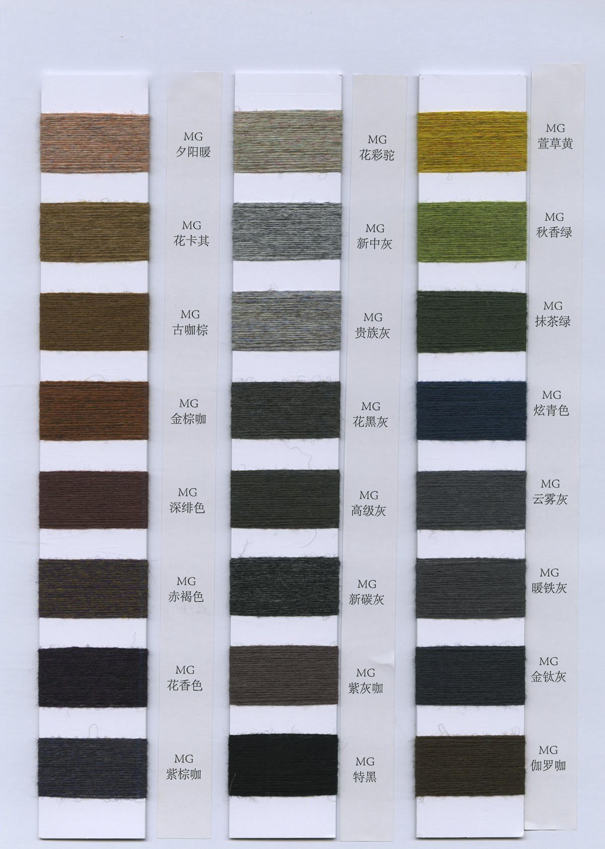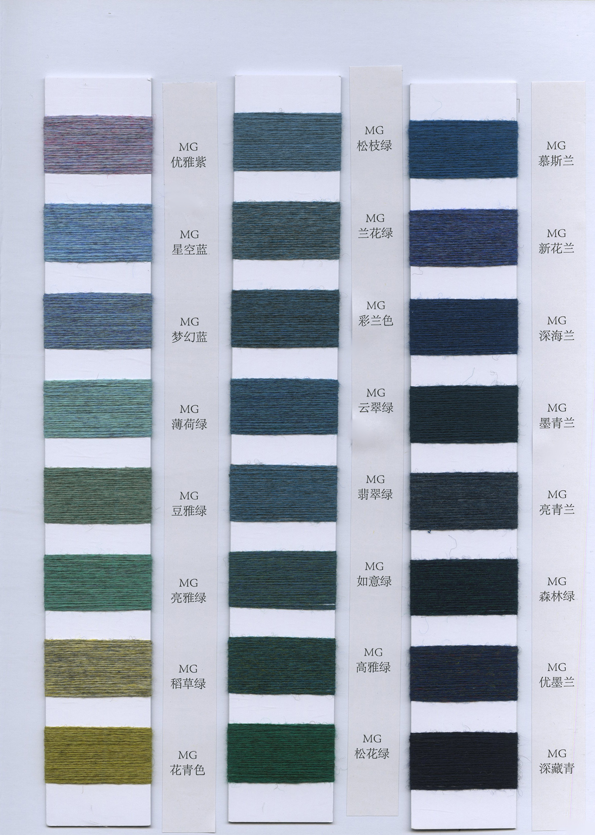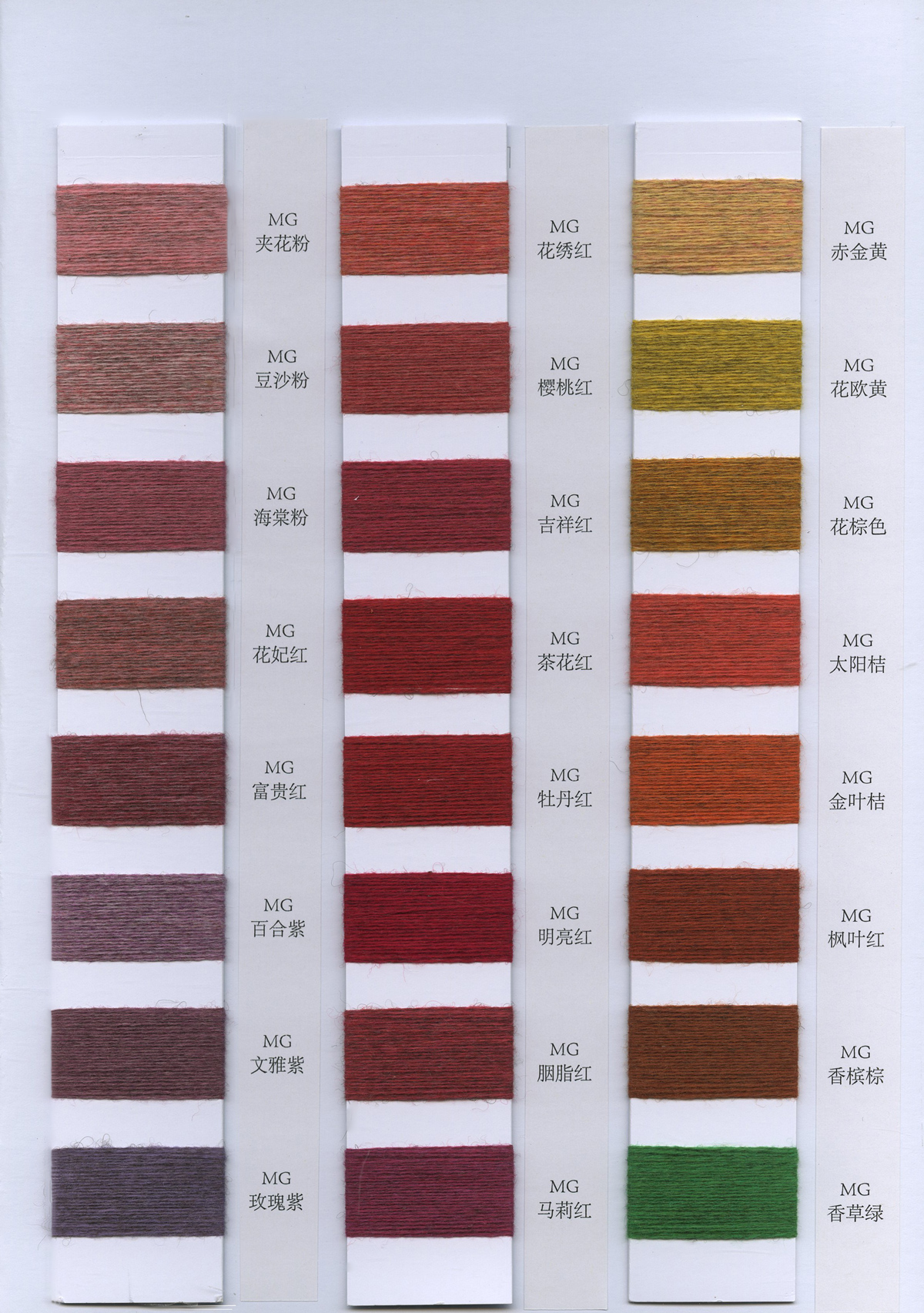 粗纺、半精纺纱纱,有羊绒羊毛混纺纱、全羊毛,高中低各种比例羊毛混纺、水溶羊毛,棉及棉毛绒,天丝、加葱加珠纱。