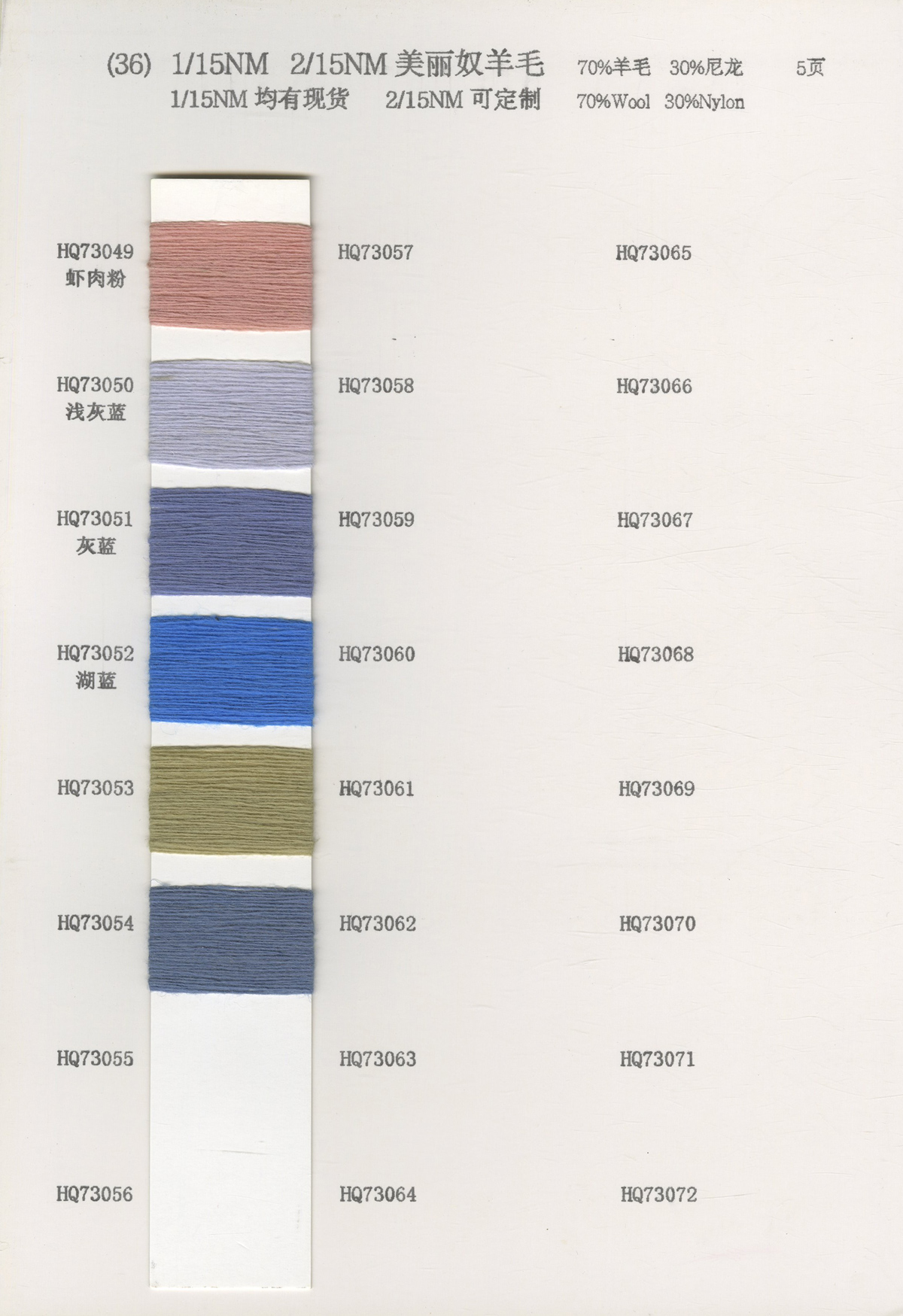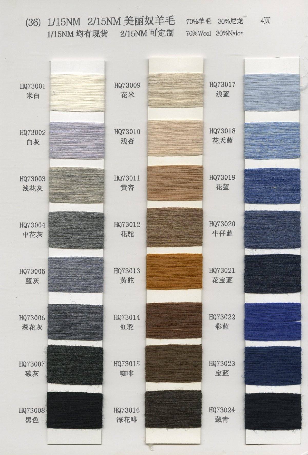 粗纺、半精纺纱纱,有羊绒羊毛混纺纱、全羊毛,高中低各种比例羊毛混纺、水溶羊毛,棉及棉毛绒,天丝、加葱加珠纱。