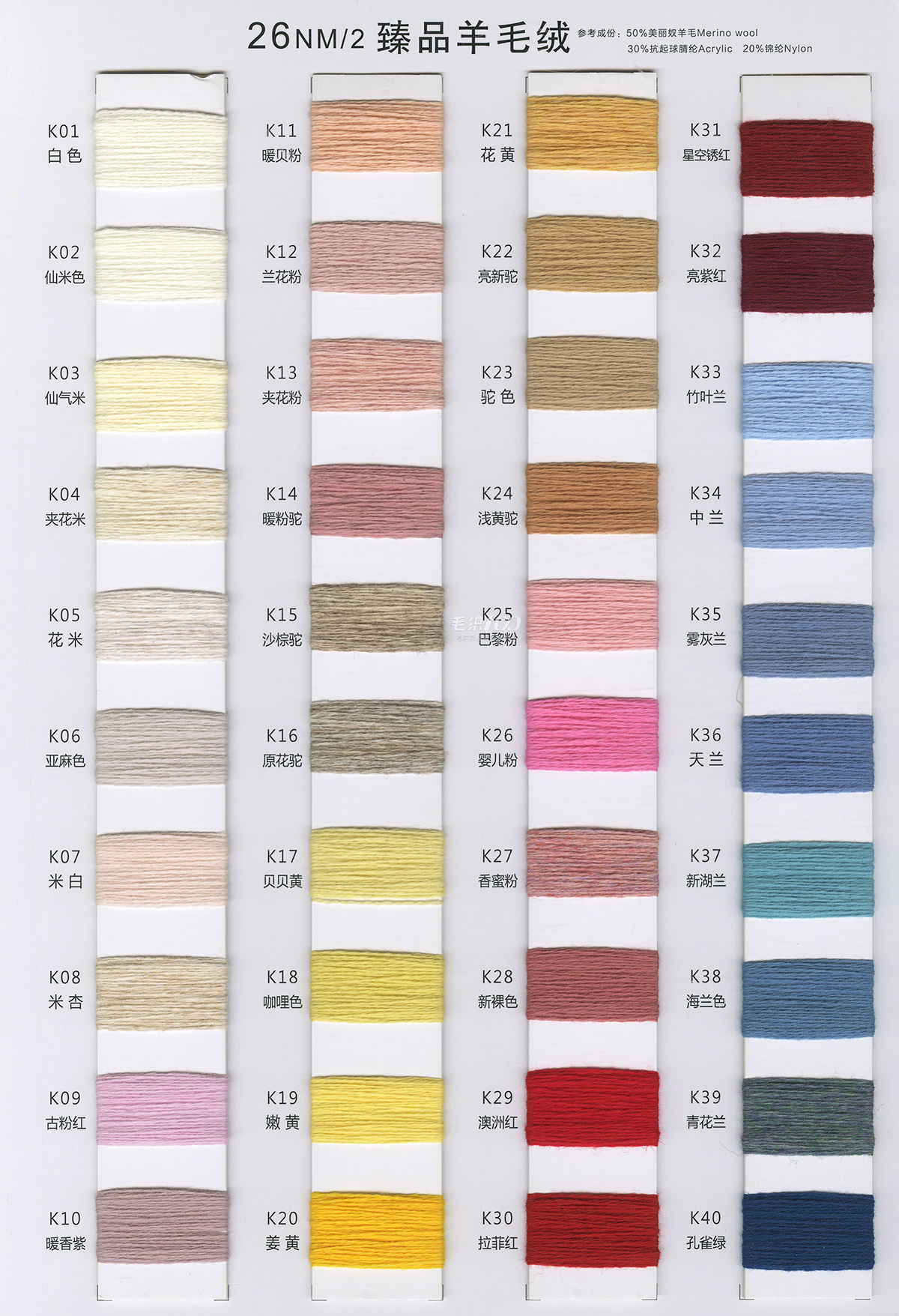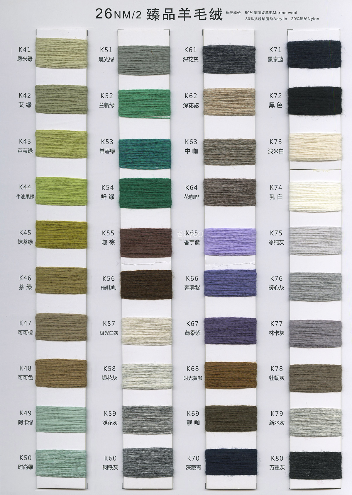 24/2 精品短貂绒A貂、B貂 、24/2精品浣熊绒、24/2走锭澳毛绒、26/2臻品羊毛绒、13.5/2 长毛水貂绒 10% .5% .3% 山羊绒混纺、 28/2 .30/2. 48/2 山羊绒棉、 28/2 丝光膨体五五毛、 24/2 28/2 膨体真三七、 15W:85