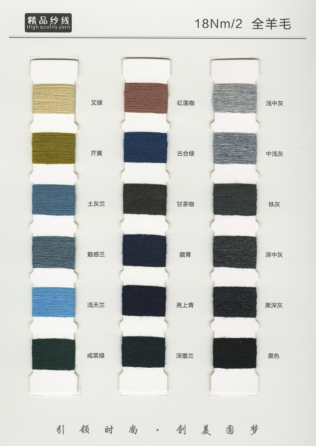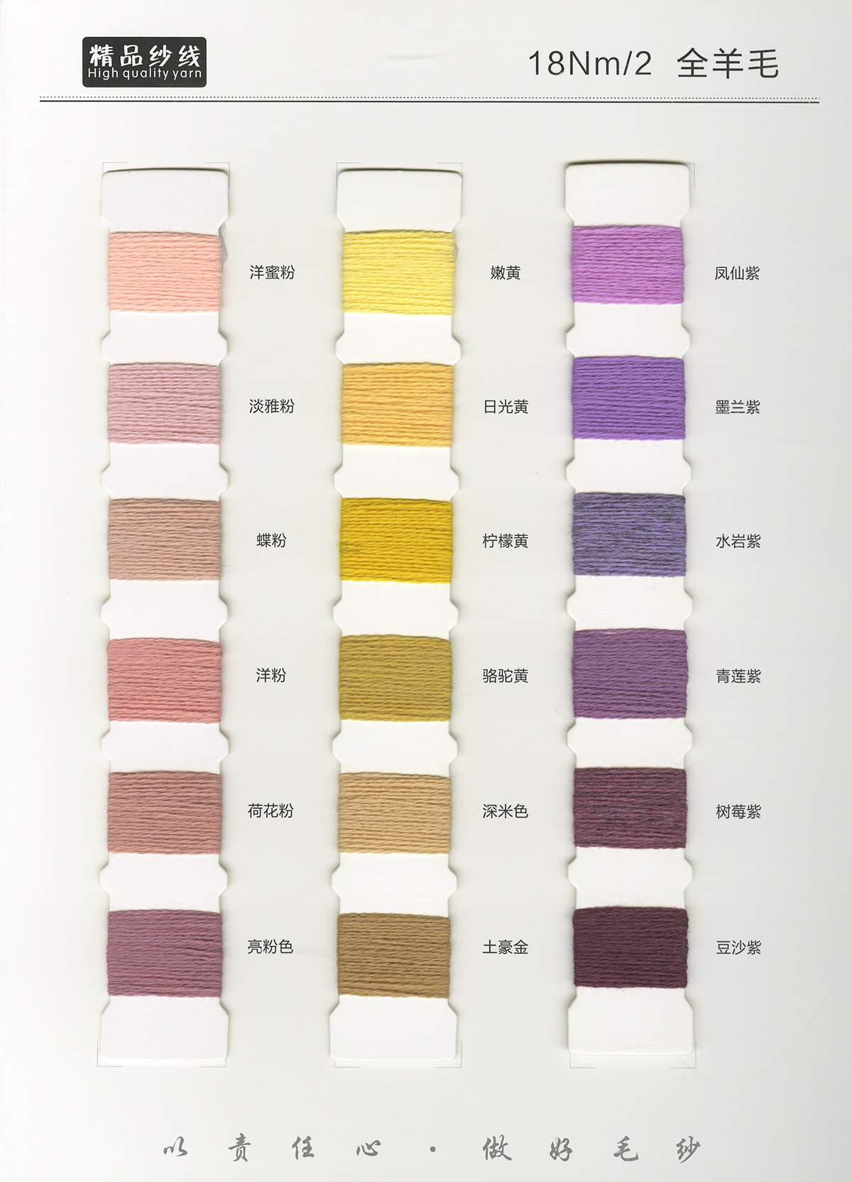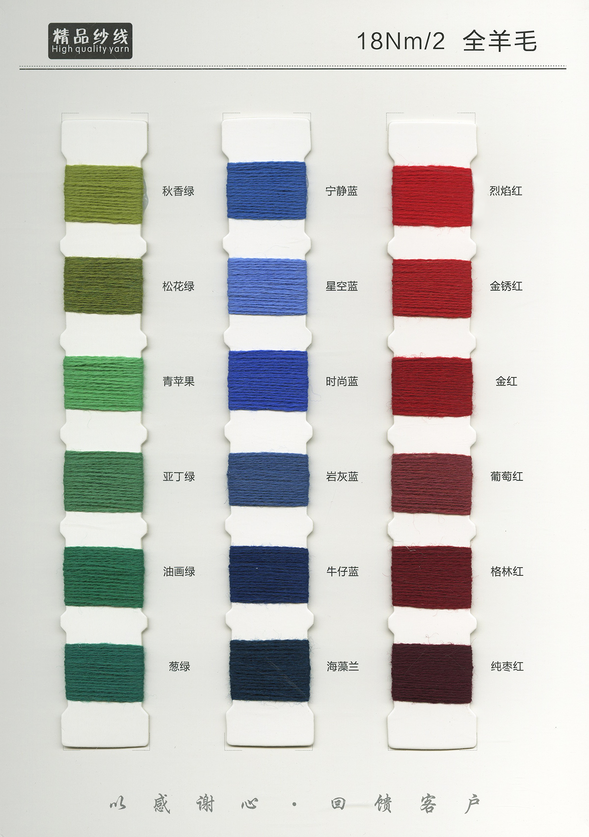 粗纺、半精纺纱纱,有羊绒羊毛混纺纱、全羊毛,高中低各种比例羊毛混纺、水溶羊毛,棉及棉毛绒,天丝、加葱加珠纱。