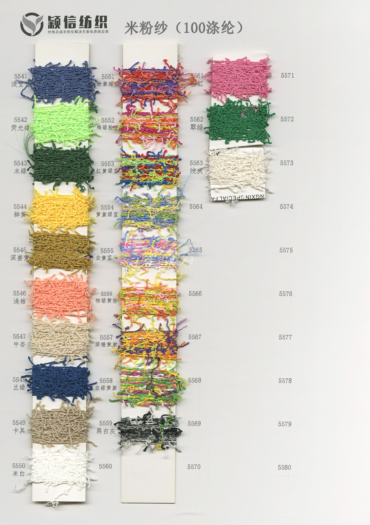 珠片纱系列 彩点纱系列 磨毛绒系列 环保再生系列 抗菌系列 马海毛系列 圈圈纱系列 渐变纱系列 段染系列 羊毛混纺系列 春夏特种纱系列 等各类新型花式纱