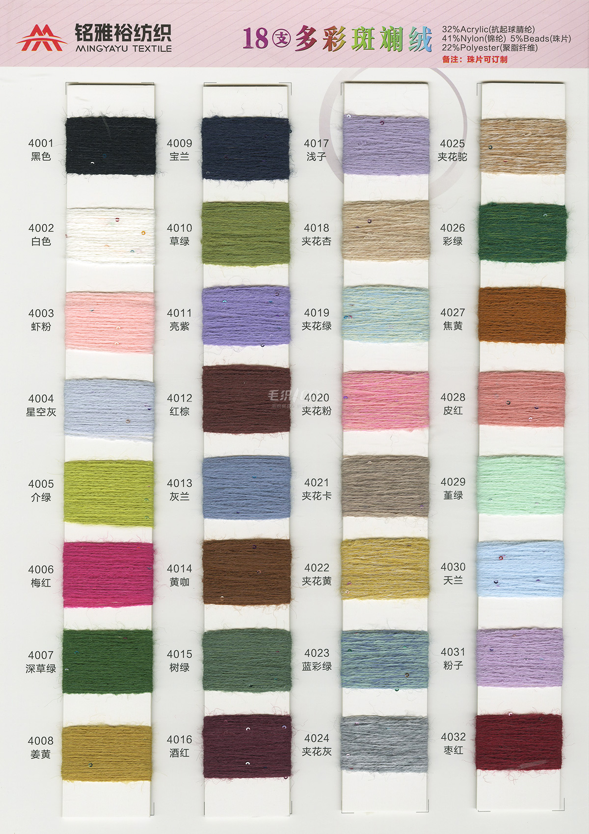 小羊绒胚纱、彩点北极绒胚纱、黑白点胚纱、北极绒胚纱、银丝北极绒胚纱、仿麻包芯纱、西班牙、15支长毛马海、再生德绒、云朵&宫娥、美洋洋、1/9巴洛克、哆啦羊驼、皮草-憧憬、好兔绒包芯纱、8字纱、二经一韦、元宝纱、帕丝米纳、芙洛拉、炫彩星空、斑点绒、百花绒、羊驼长毛、皇冠珠片纱、美拉德珠片绒、锦绣珠片、珠片澳绒、多彩斑斓、爽亚麻、胚纱系列 !花式纱系列 ! 珠片系列 ! 绒毛纱&磨毛纱等!