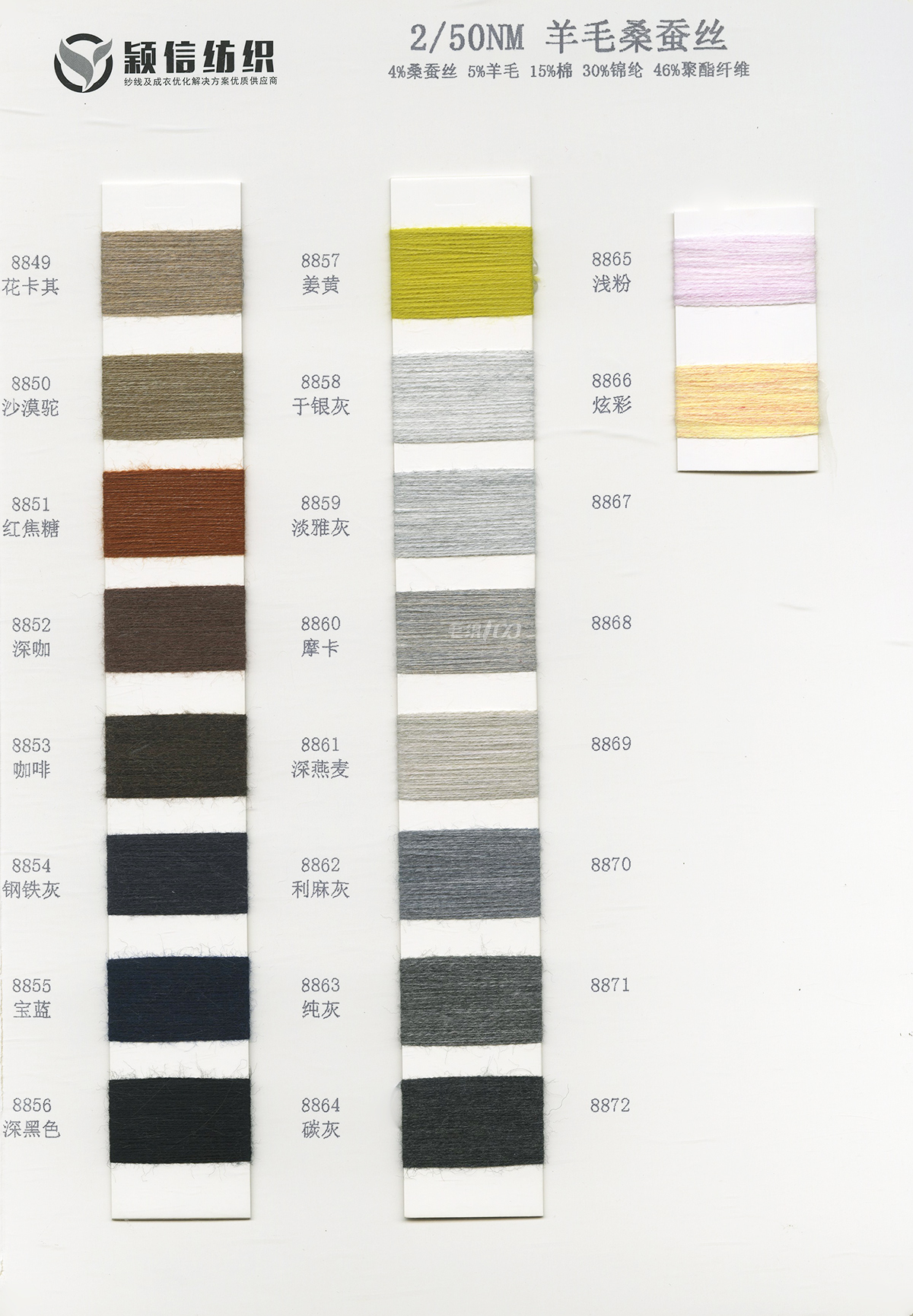 珠片纱系列 彩点纱系列 磨毛绒系列 环保再生系列 抗菌系列 马海毛系列 圈圈纱系列 渐变纱系列 段染系列 羊毛混纺系列 春夏特种纱系列 等各类新型花式纱
