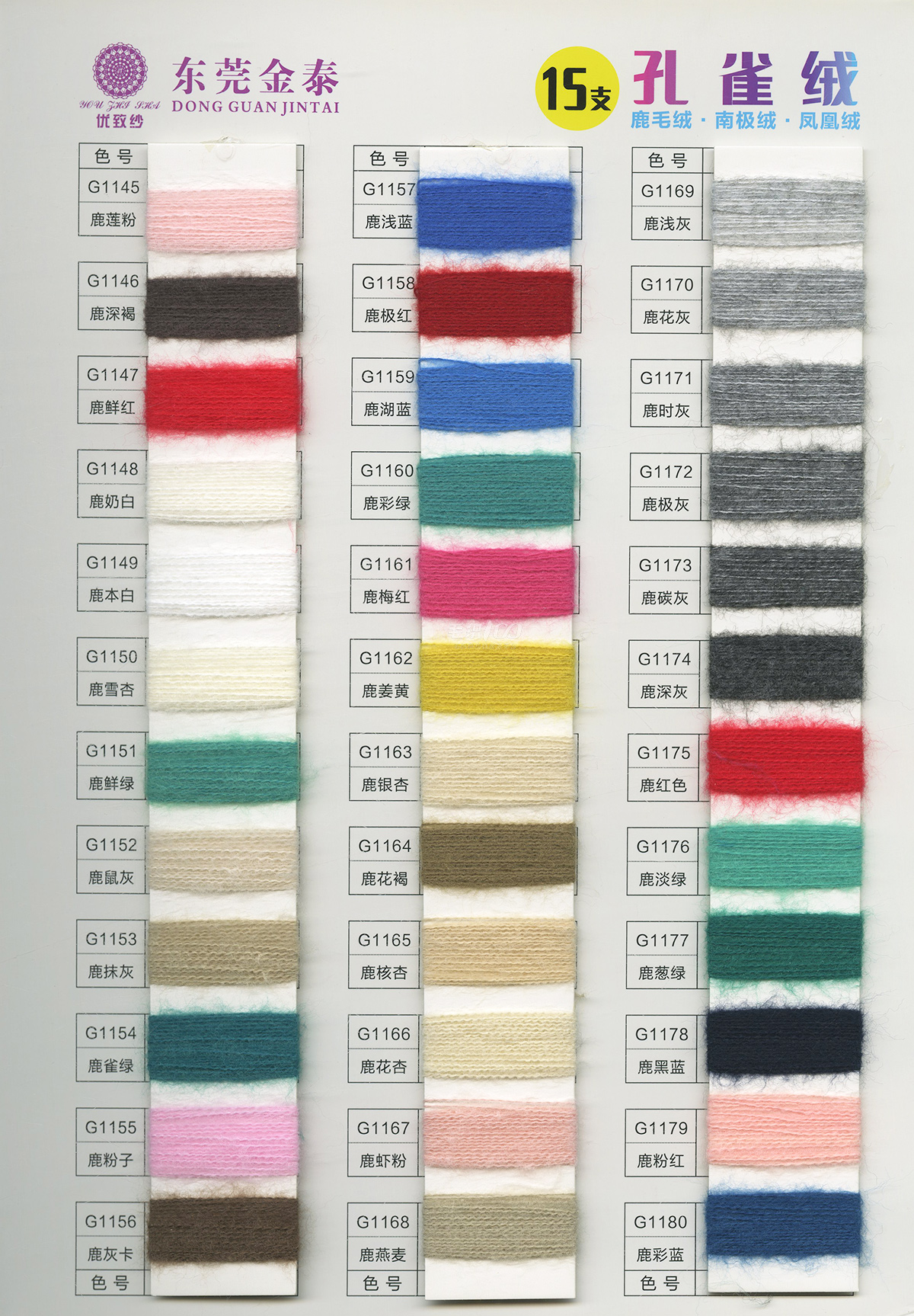 春夏系列:超细亚麻丝绸、莱赛尔丝绸、桑蚕丝莱赛尔、羊毛莱赛尔、天爽亚麻、亚麻天丝、(净色、段染)莱赛尔高粘天丝、(段染)冰爽丝、(段染)高粘仿亚麻(段染)高端亚丽爽、亲肤麻丝、超细亚丽爽、银爽丝、蚕丝棉、冰丝、22支.28支仿麻丝、高端亚丽爽、高粘仿亚麻、闪光丝、冰爽丝、----秋冬系列:山羊绒、牛奶丝、带子包缠纱、仿麻包芯、色纺金貂、18支.28支北极绒、孔雀绒、水晶安迪绒、渐变磨毛绒、K绒、香风小肚纱、圈圈纱