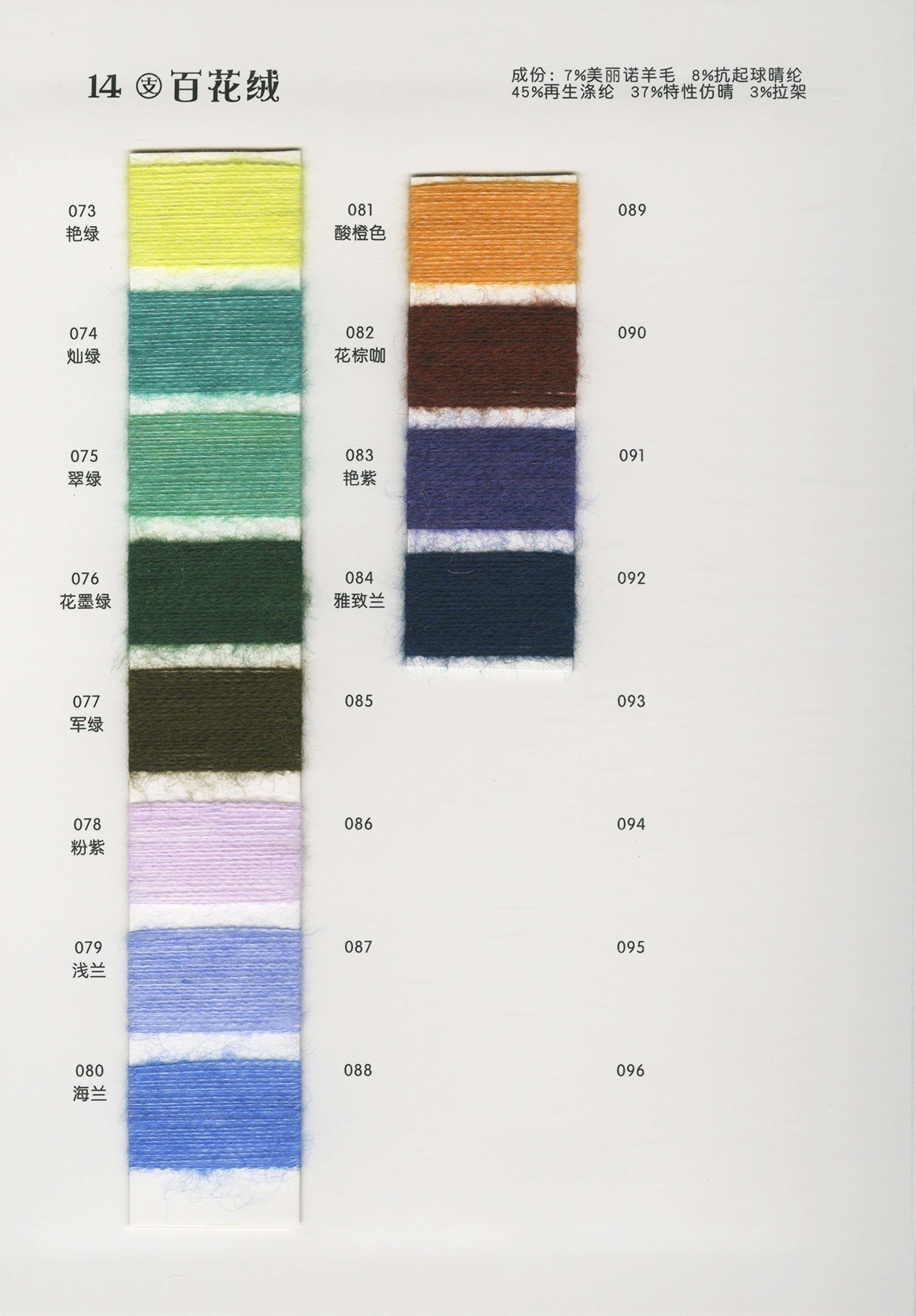 各类时尚花式纱线 中高端马海毛羊驼毛系列 羊绒羊毛混纺系列 浣熊绒系列 春夏系列 多合股拼纱 圆筒带