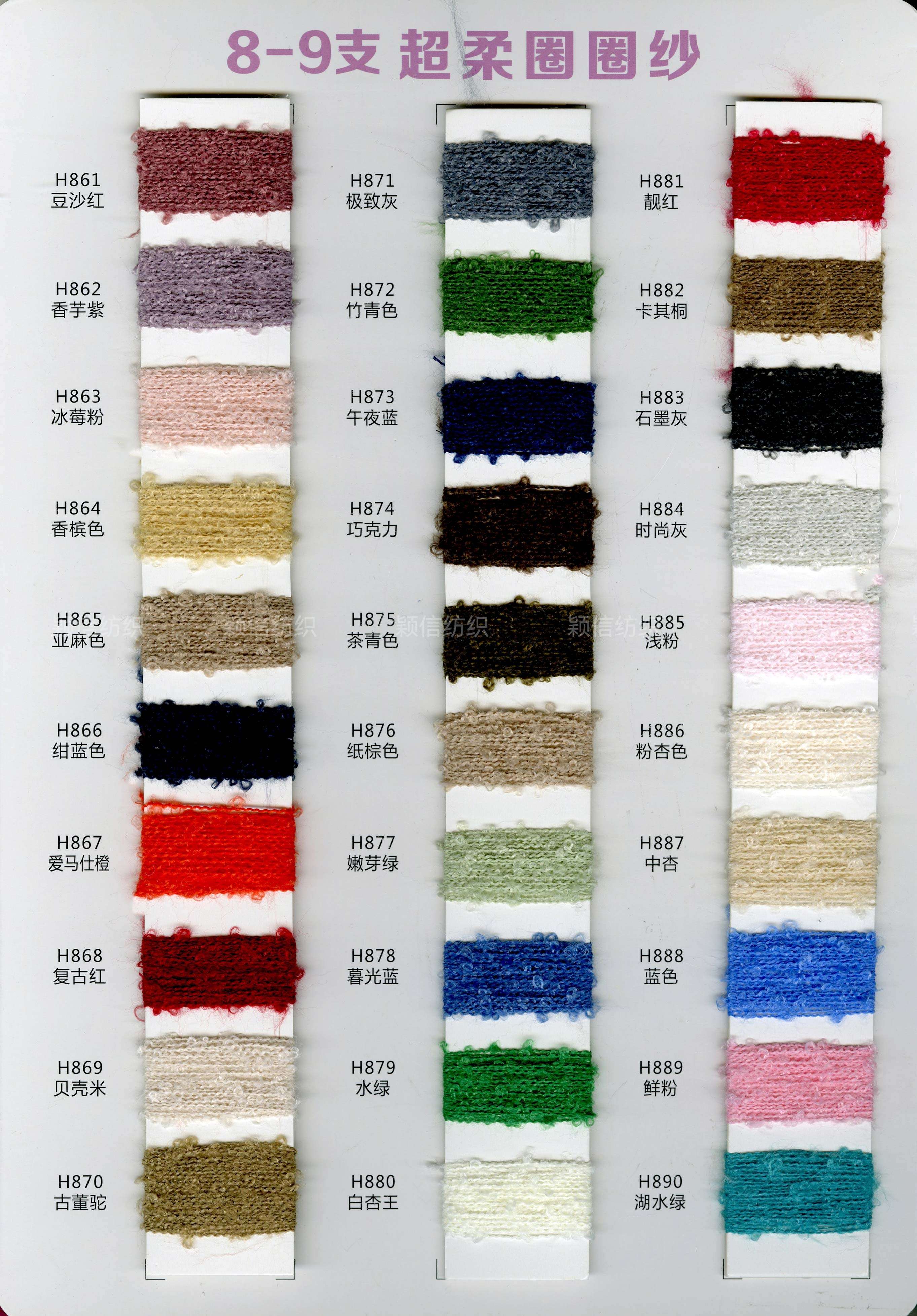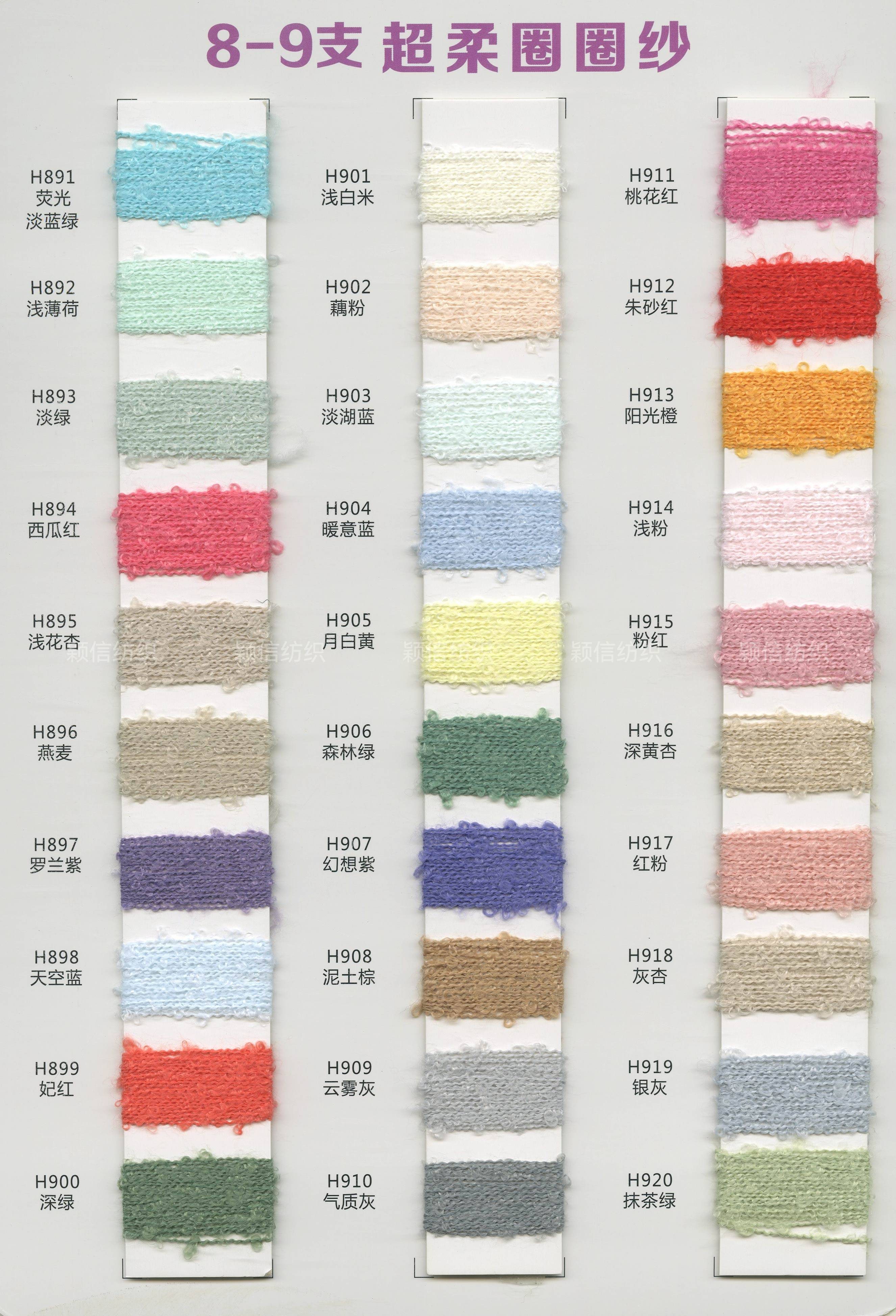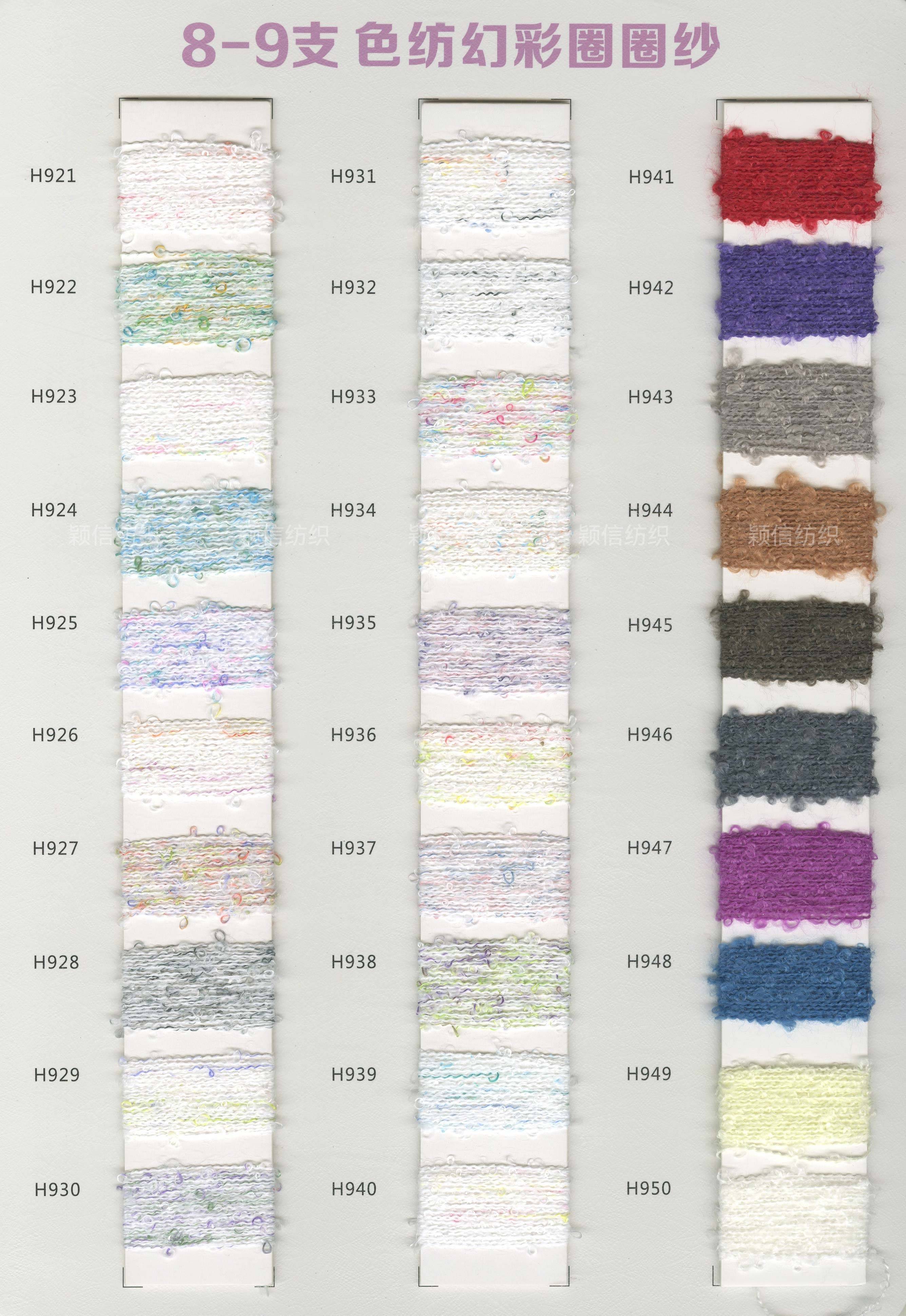 珠片纱系列 彩点纱系列 磨毛绒系列 环保再生系列 抗菌系列 马海毛系列 圈圈纱系列 渐变纱系列 段染系列 羊毛混纺系列 春夏特种纱系列 等各类新型花式纱