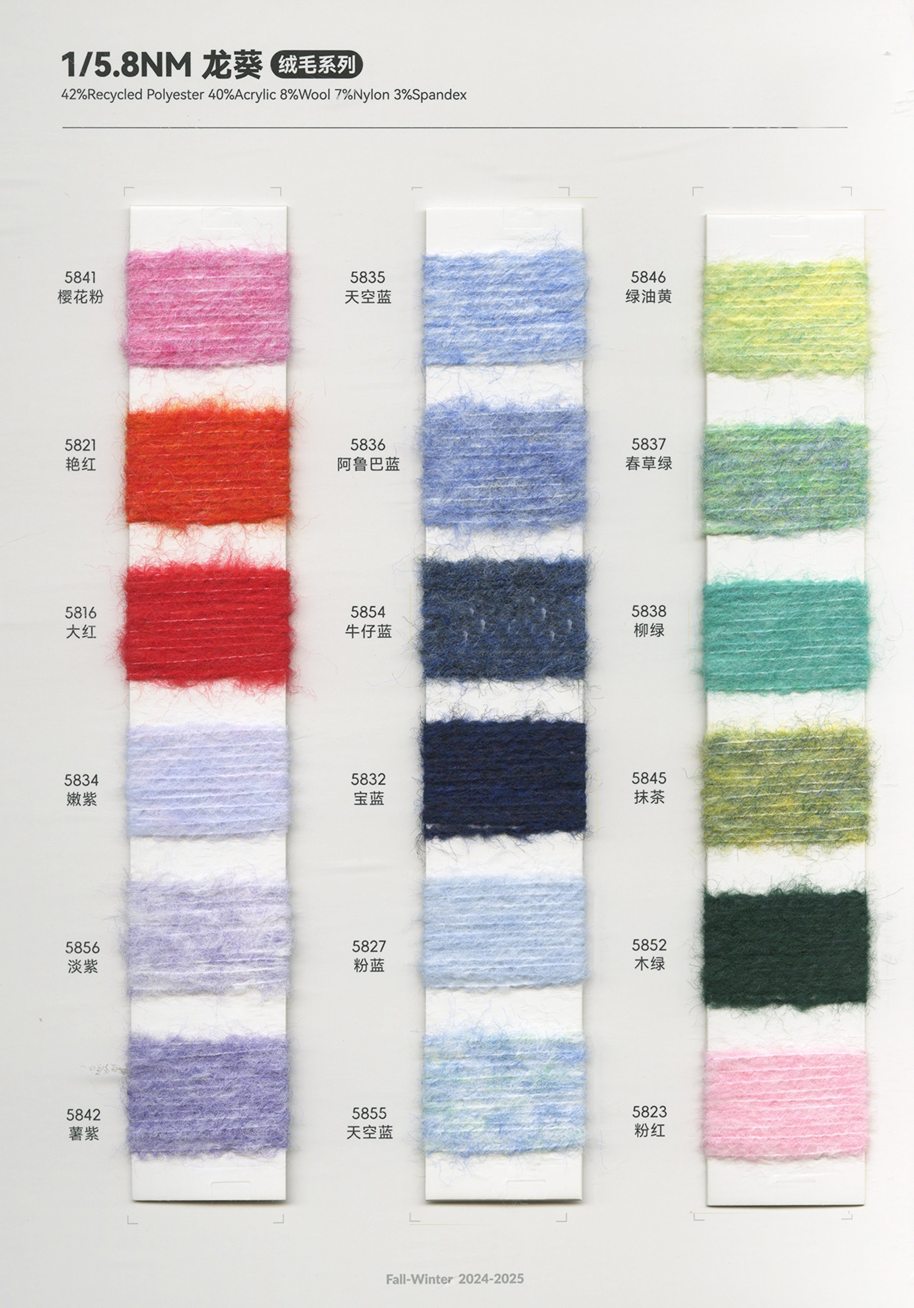各类时尚花式纱线 中高端马海毛羊驼毛系列 羊绒羊毛混纺系列 浣熊绒系列 春夏系列 多合股拼纱 圆筒带