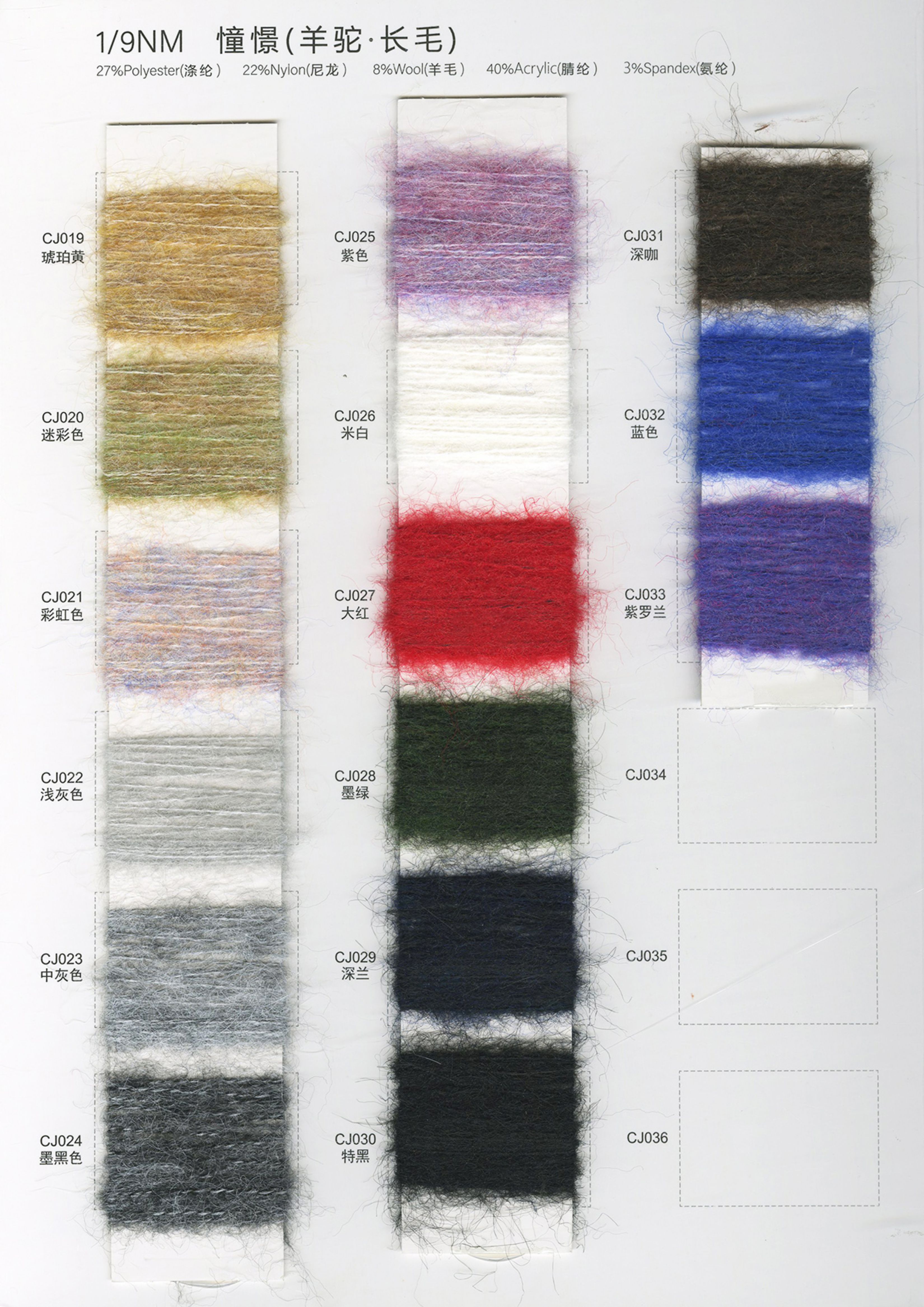 各类时尚花式纱线 中高端马海毛羊驼毛系列 羊绒羊毛混纺系列 浣熊绒系列 春夏系列 多合股拼纱 圆筒带