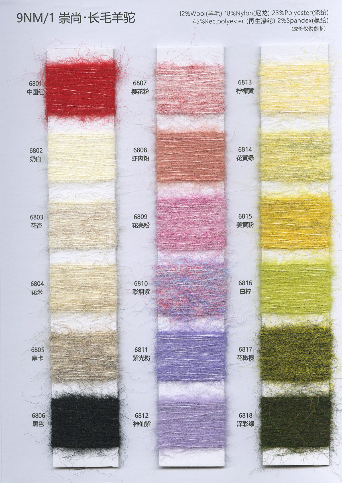 各类时尚花式纱线 中高端马海毛羊驼毛系列 羊绒羊毛混纺系列 浣熊绒系列 春夏系列 多合股拼纱 圆筒带