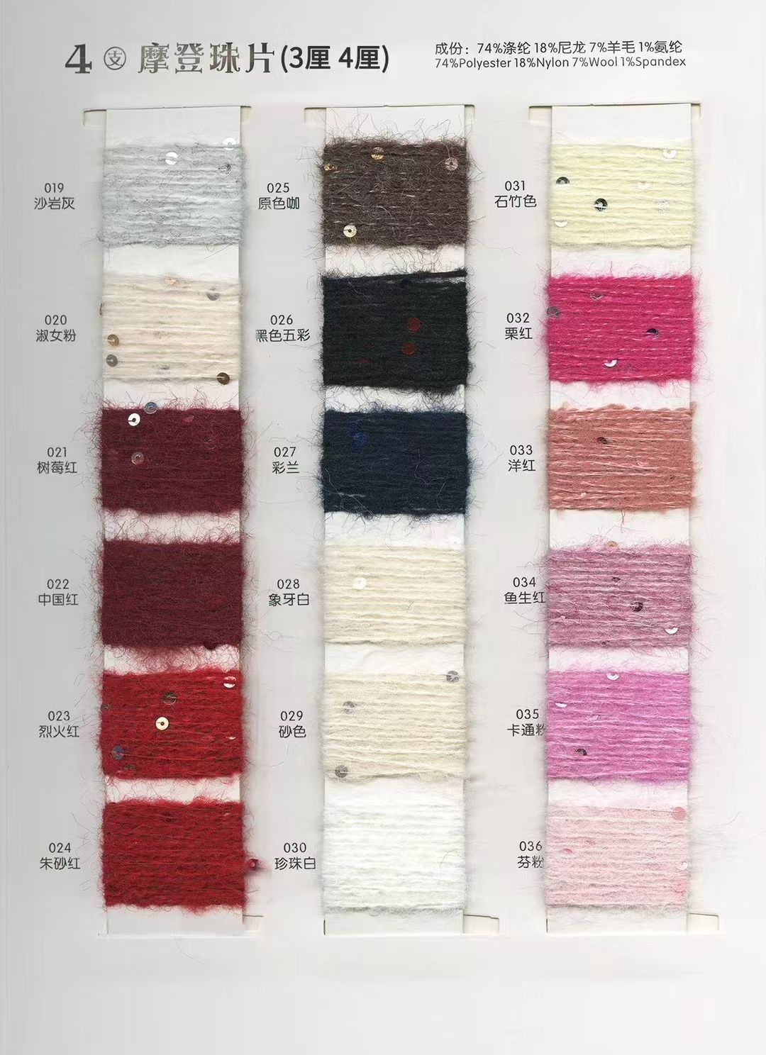 珠片纱系列 彩点纱系列 磨毛绒系列 环保再生系列 抗菌系列 马海毛系列 圈圈纱系列 渐变纱系列 段染系列 羊毛混纺系列 春夏特种纱系列 等各类新型花式纱