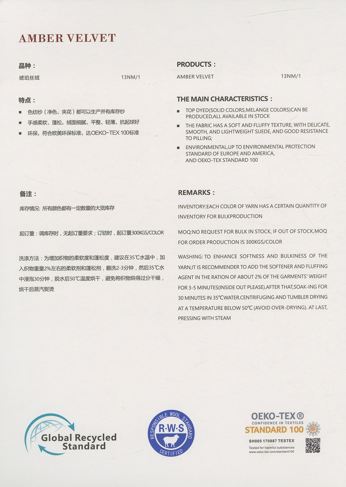 粗纺、半精纺纱纱,有羊绒羊毛混纺纱、全羊毛,高中低各种比例羊毛混纺、水溶羊毛,棉及棉毛绒,天丝、加葱加珠纱。
