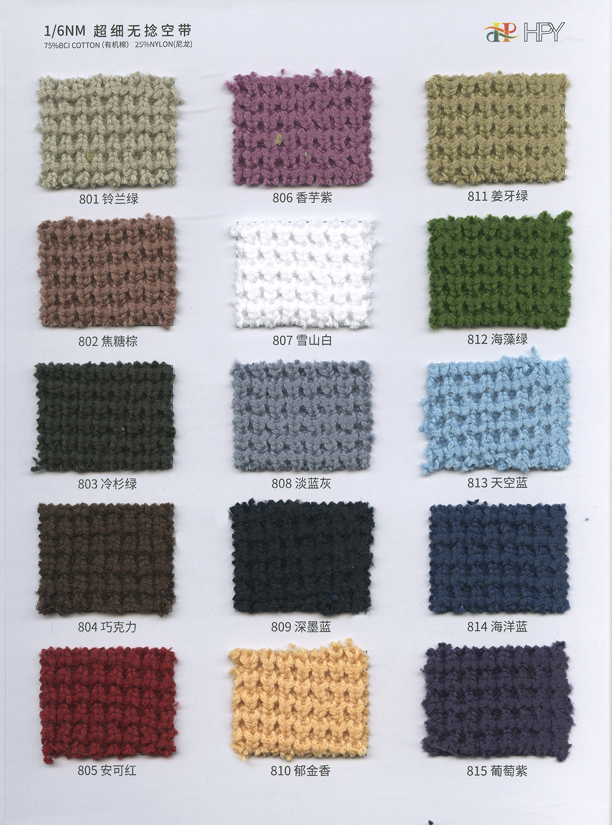 6/1维丝可喷毛绒、14/1雅克牛绒、5.5/1雪花骆马绒、3.5/1绚丽喷毛绒、8/1羊驼喷毛绒、5.5/1骆马喷毛绒、3.5/1亮彩喷毛绒、15/1迷你羊驼圈圈、14/1纤柔马海圈圈、7.5支马海圈圈纱、13/1羊毛长毛、9.8支骆马长毛、5.5支羊驼长毛、14/1华咔约马海、12/1北美浣熊绒、9/1阿拉善骆驼绒、14/2芙尔丽绒、6/2新丝丽绒、2/16南非再生驼绒