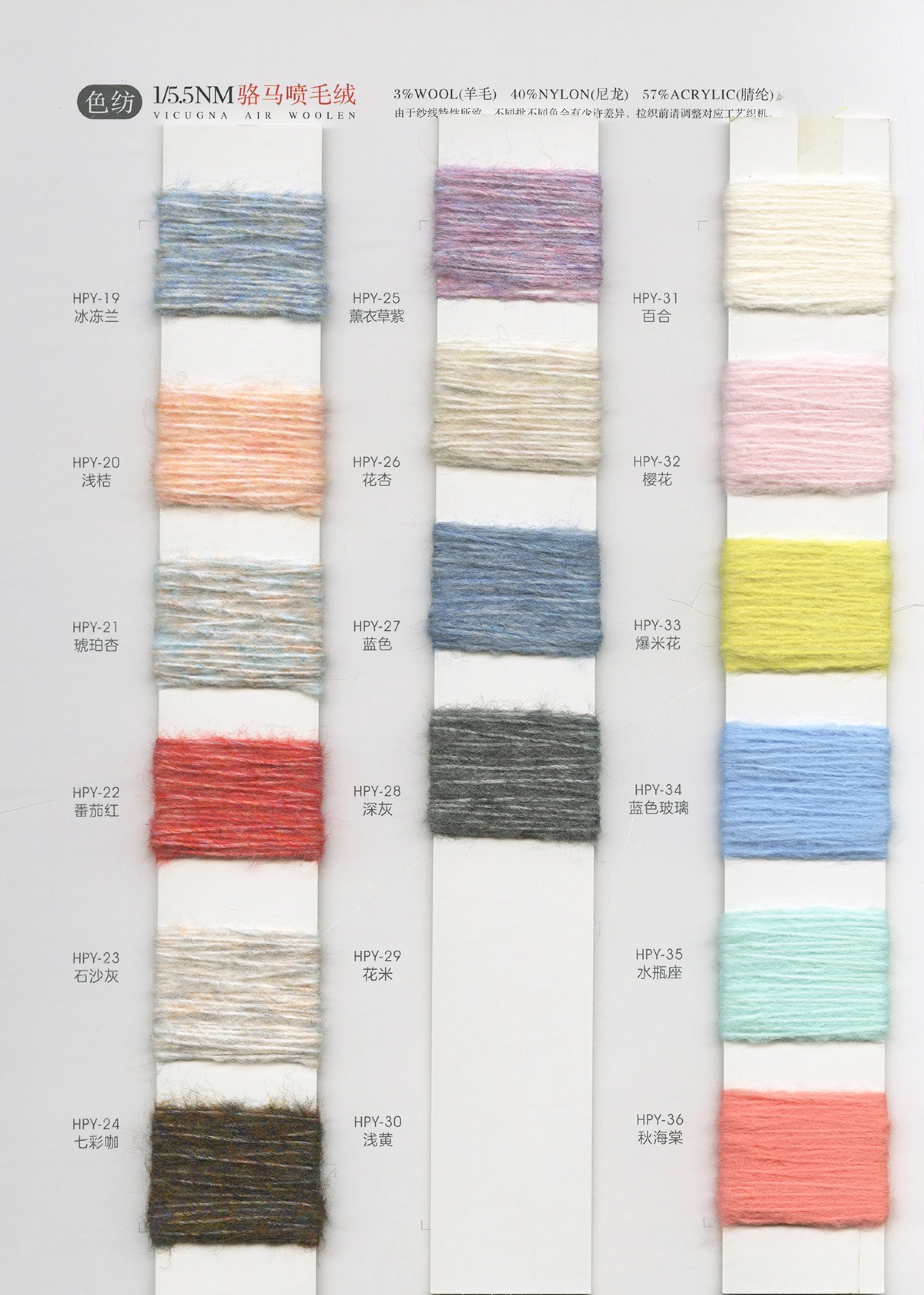 各类时尚花式纱线 中高端马海毛羊驼毛系列 羊绒羊毛混纺系列 浣熊绒系列 春夏系列 多合股拼纱 圆筒带