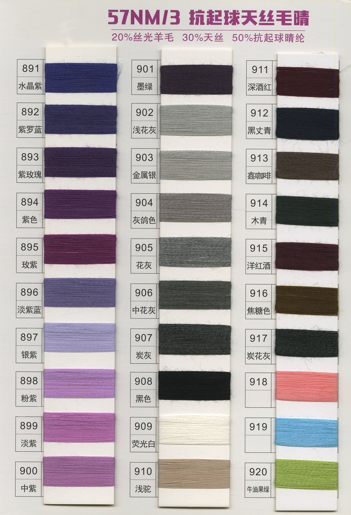 20%羊毛30%天丝50%抗起球晴纶