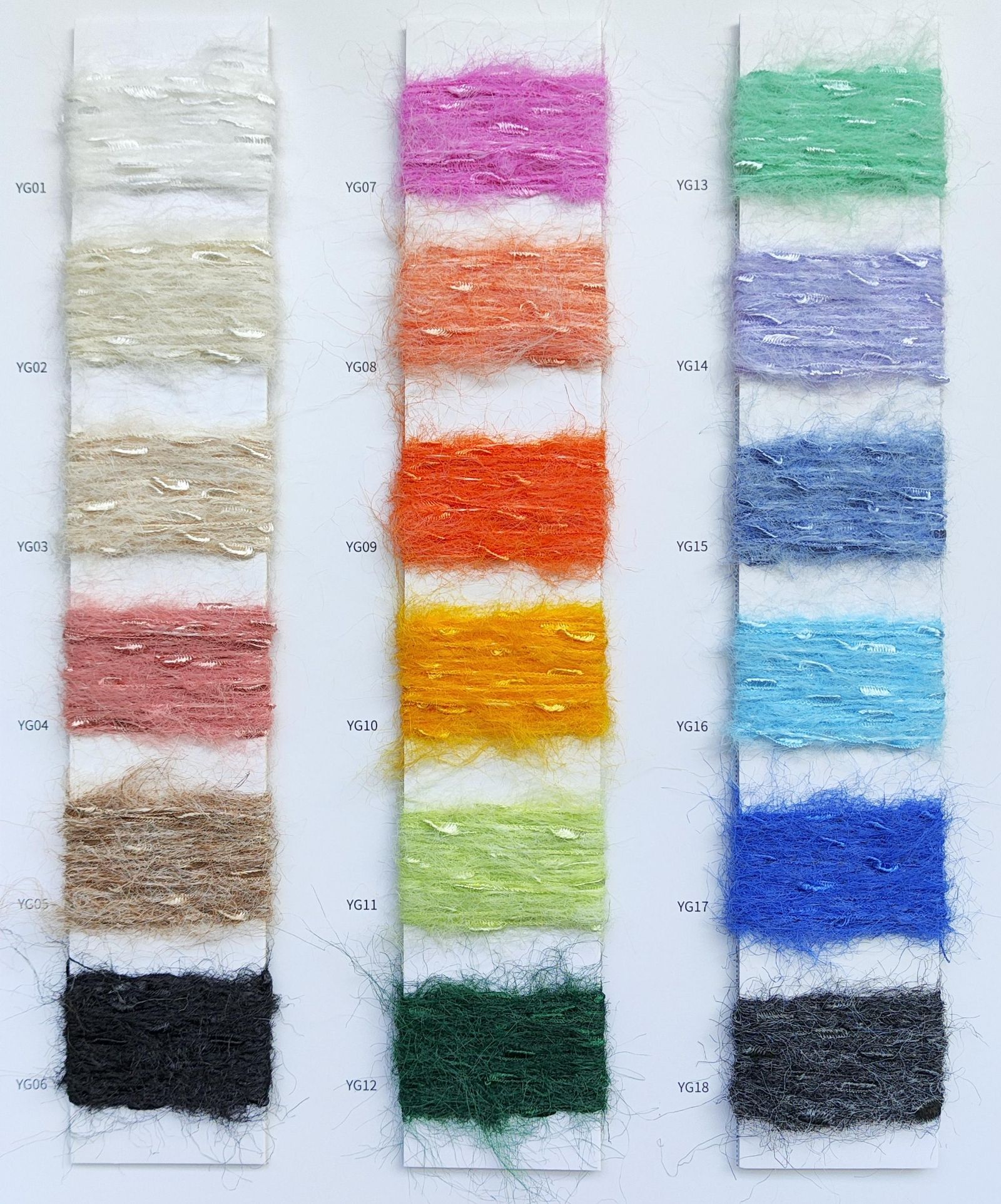 各类时尚花式纱线 中高端马海毛羊驼毛系列 羊绒羊毛混纺系列 浣熊绒系列 春夏系列 多合股拼纱 圆筒带