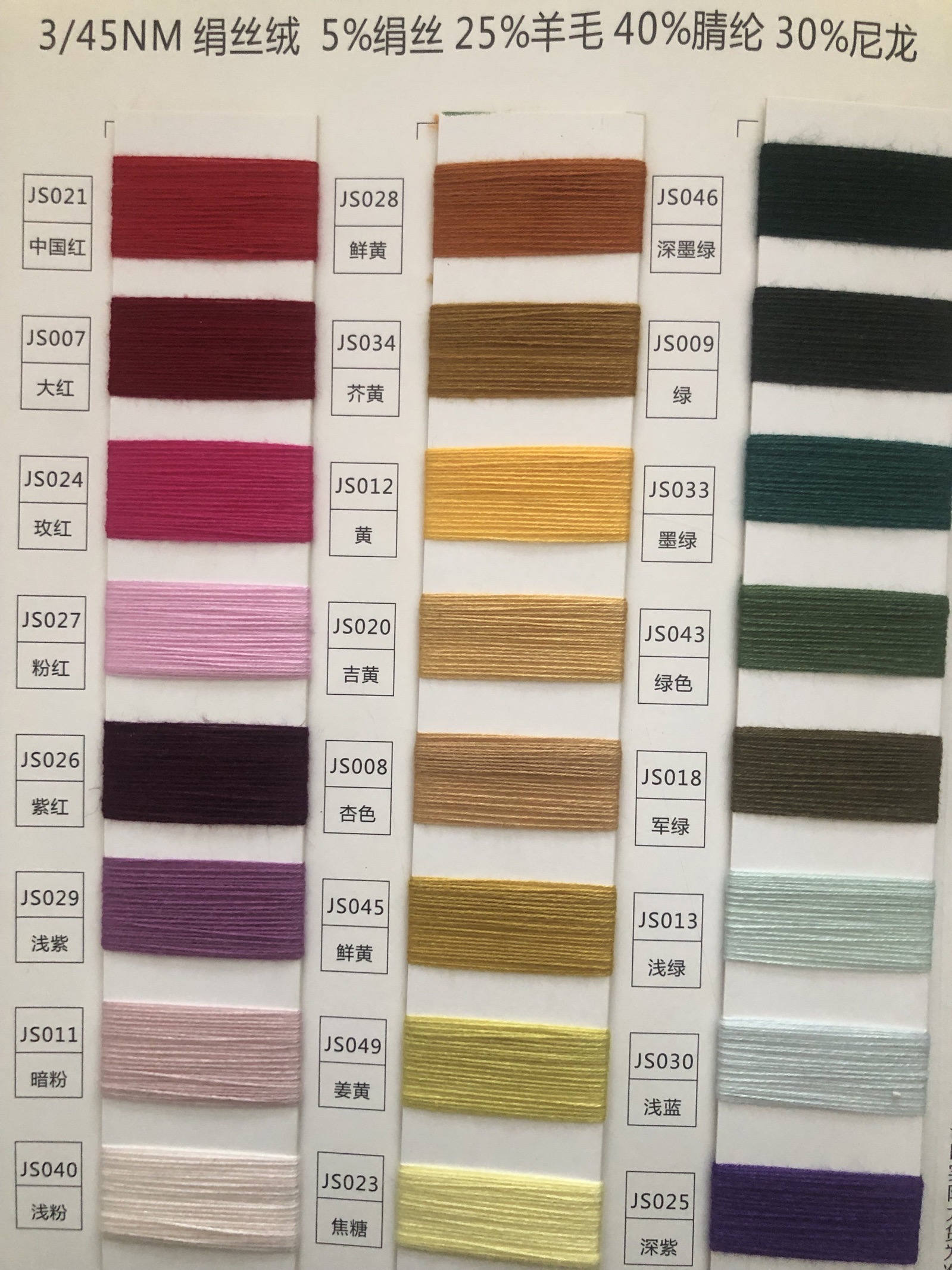 5%绢丝25%羊毛40%腈纶30%尼龙