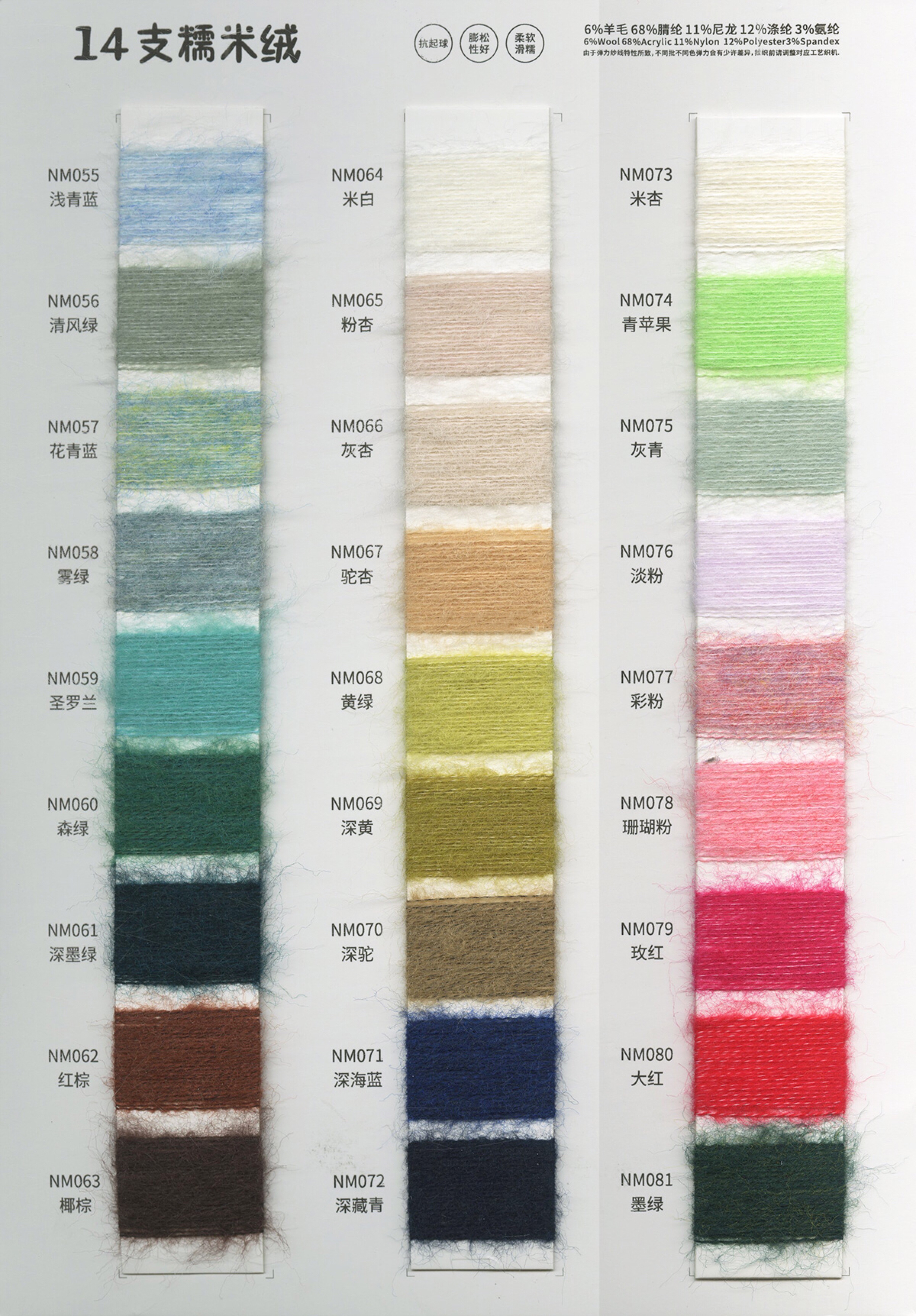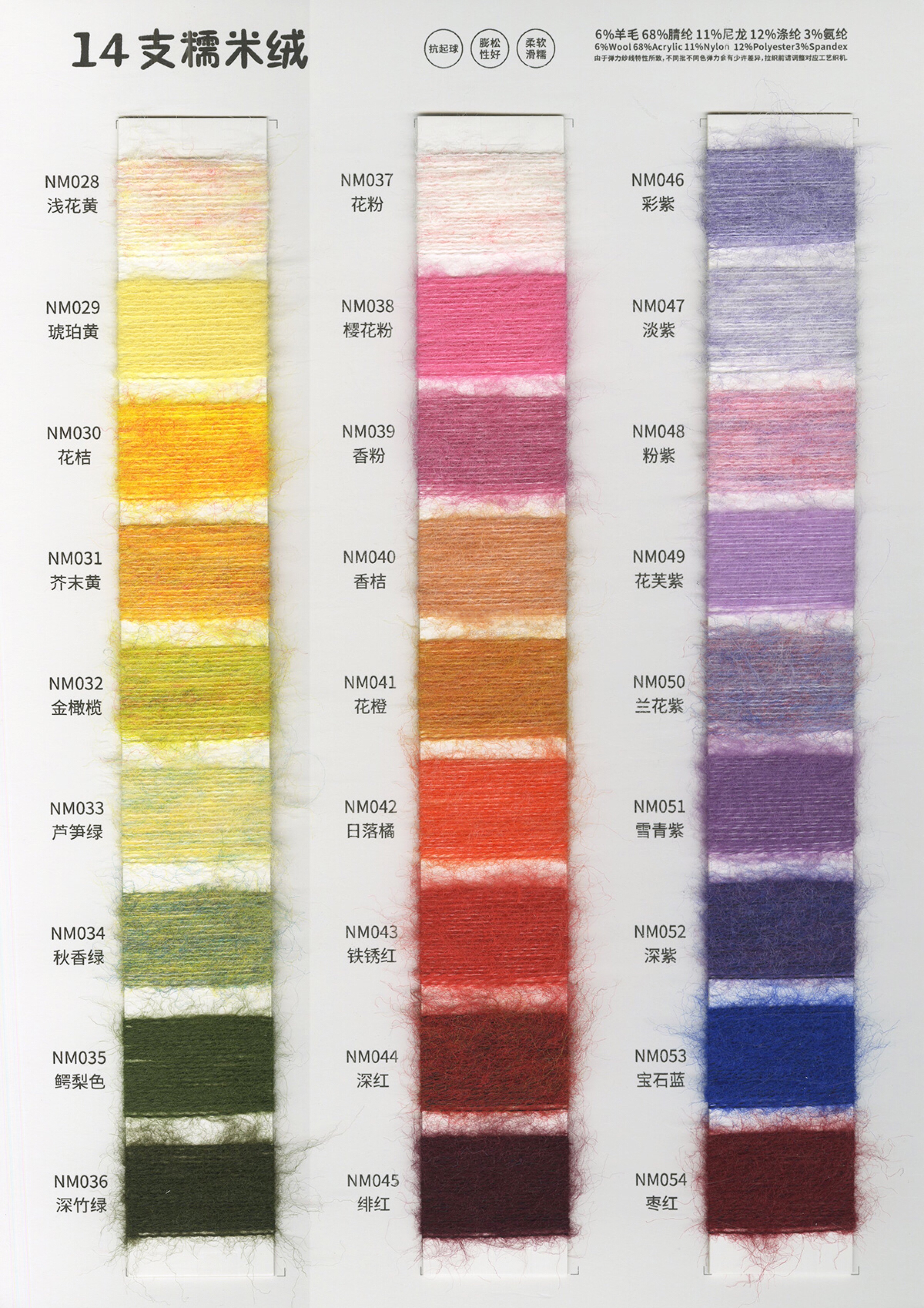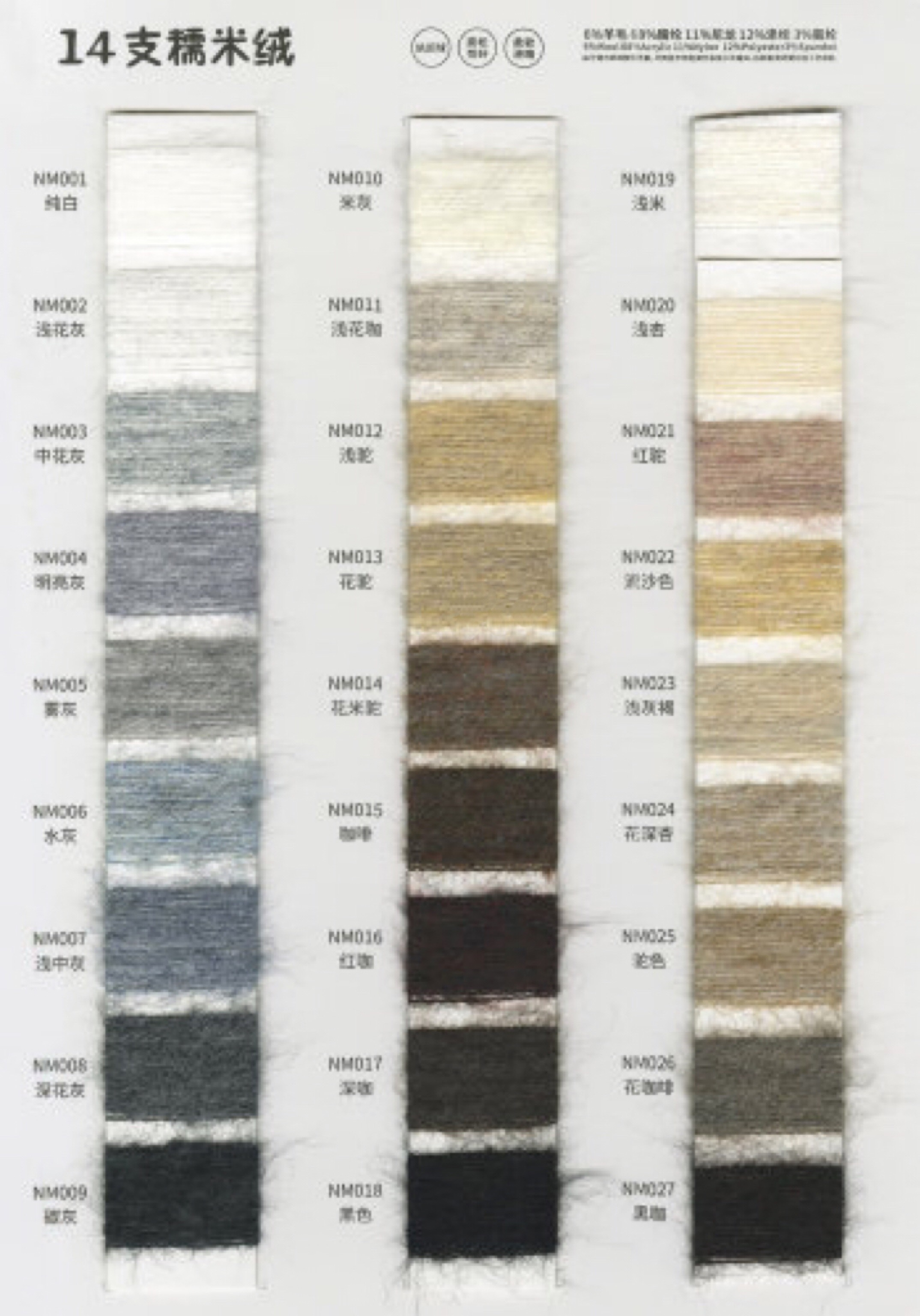 各类时尚花式纱线 中高端马海毛羊驼毛系列 羊绒羊毛混纺系列 浣熊绒系列 春夏系列 多合股拼纱 圆筒带