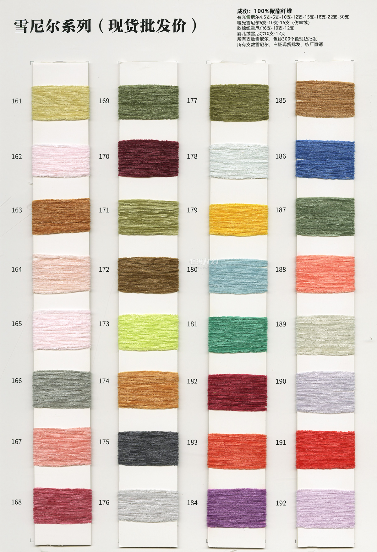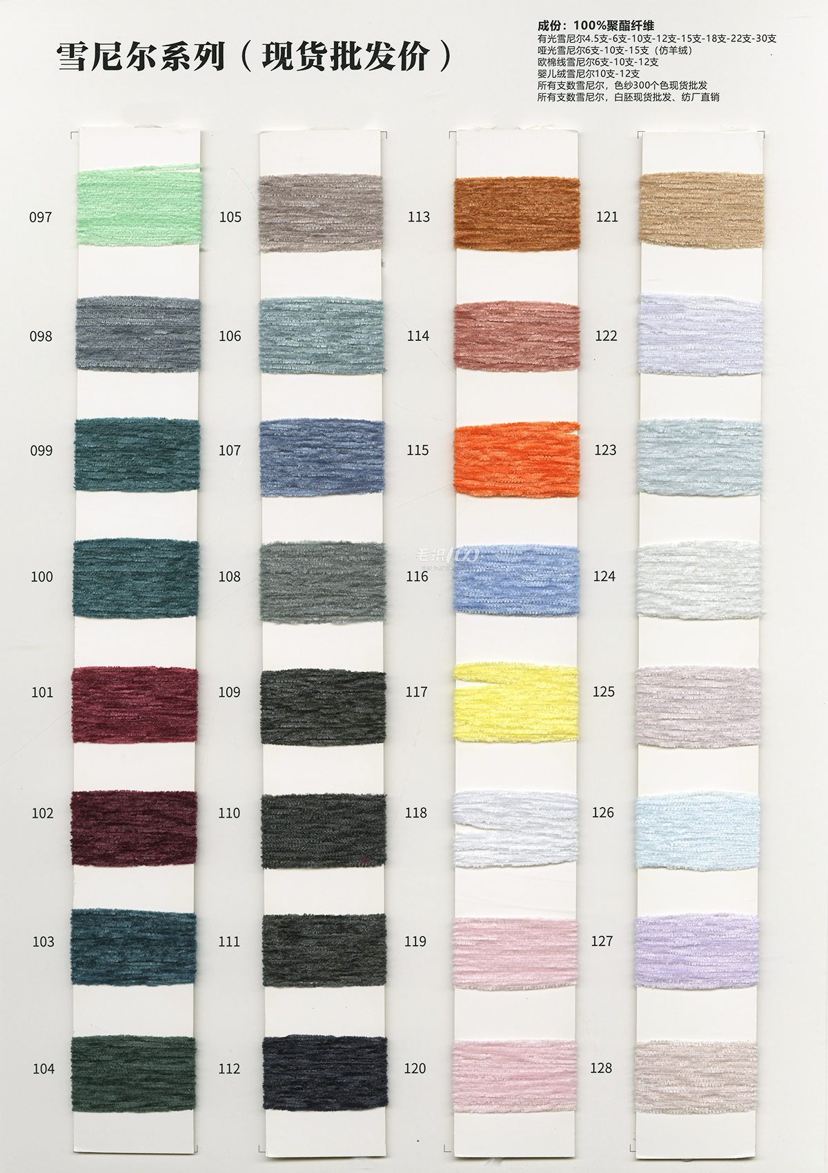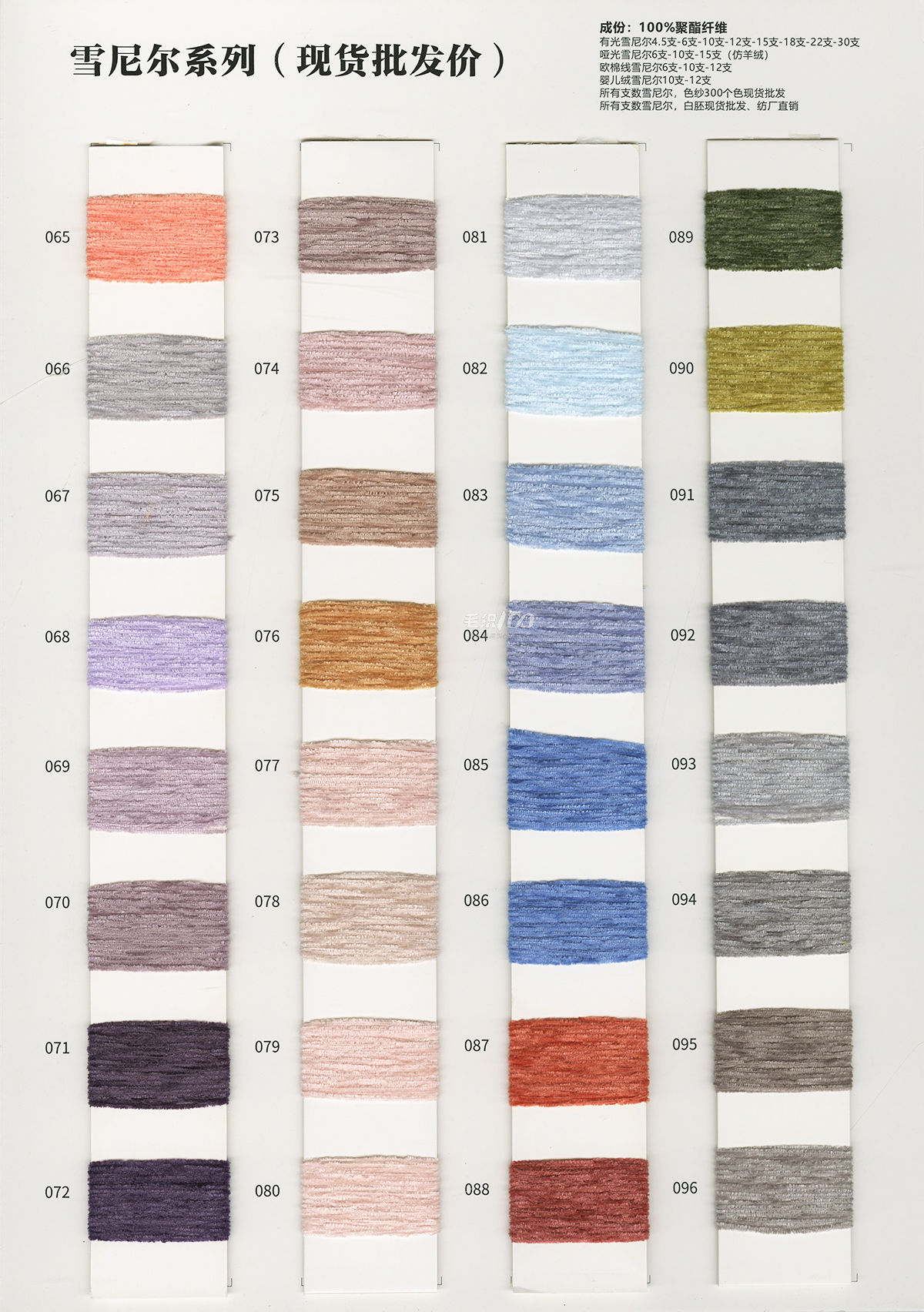棉纱,有色锦纶高弹丝,有色仿锦纶高弹丝,有色高弹包芯纱,有色兔绒包芯纱,有色冰爽丝,抗起球北极绒·绵羊绒,雪尼尔