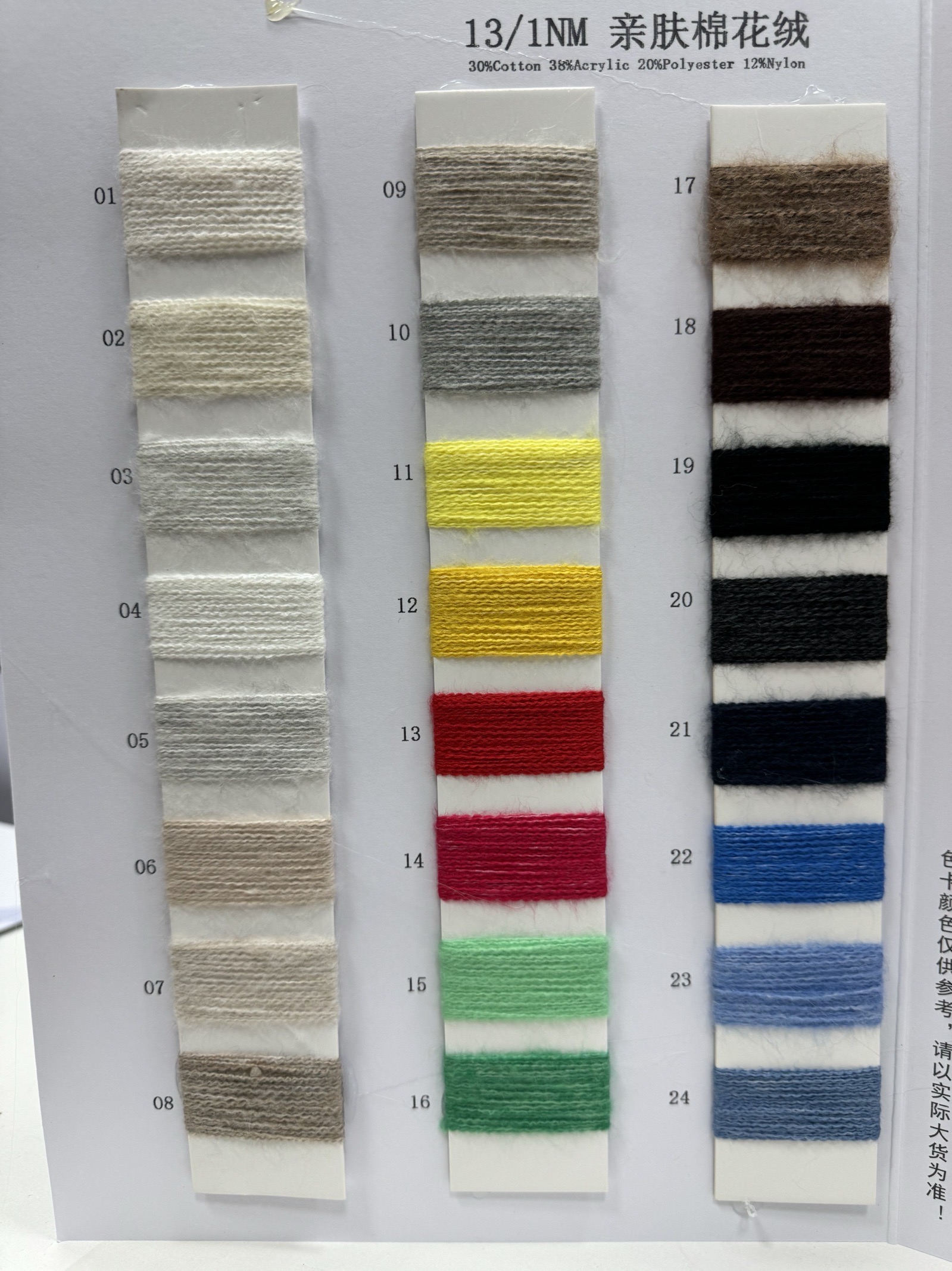 30%棉 38%晴纶 20%涤纶 12%尼龙